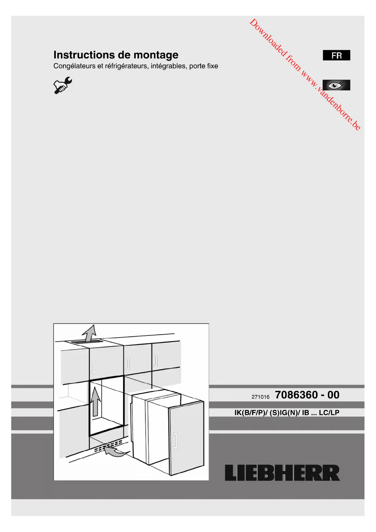 Instructions de montage Congélateurs et réfrigérateurs, intégrables, porte fixe