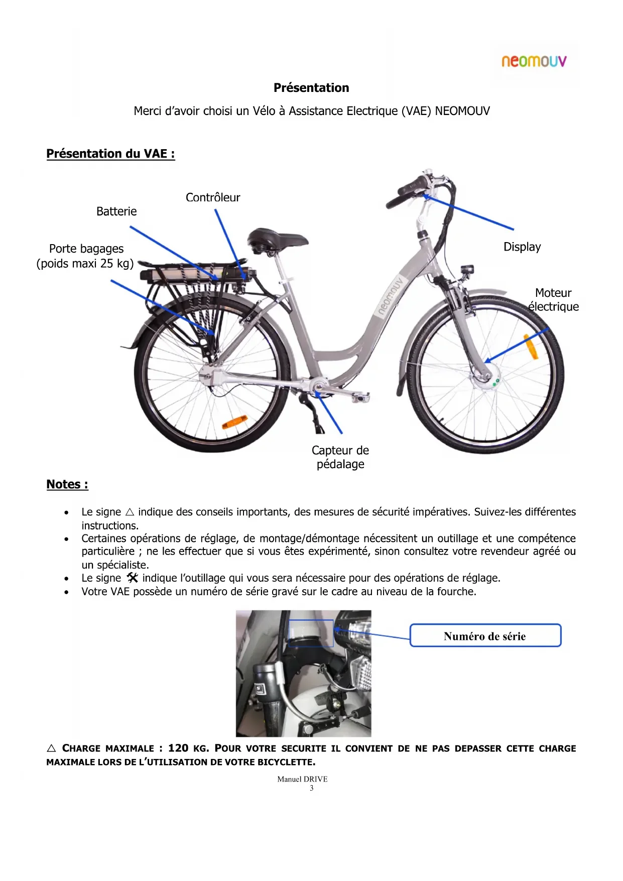 Présentation Merci d’avoir choisi un Vélo à Assistance Electrique (VAE) NEOMOUV