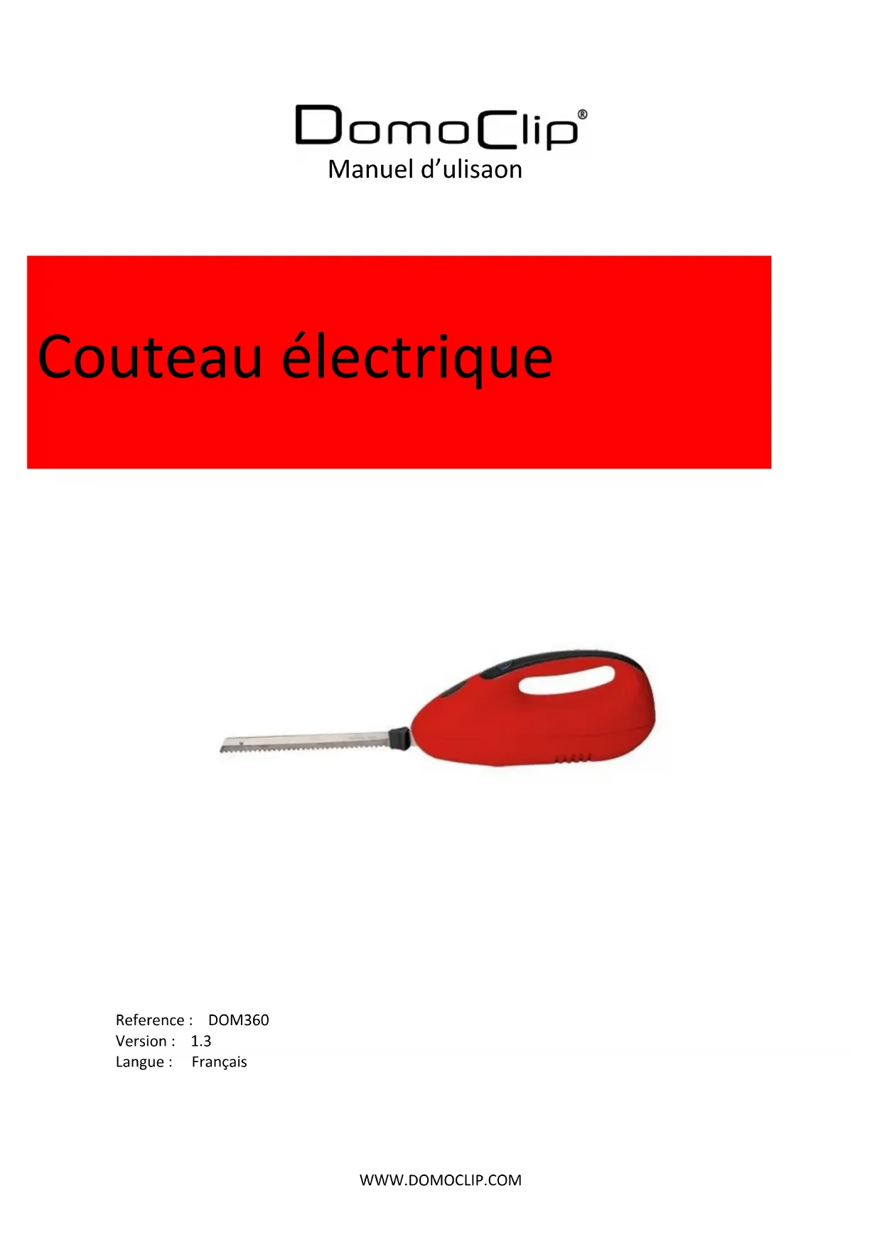 Reference : DOM360 Version : 1.3 Langue : Français Couteau électriqueManuel d’utilisation