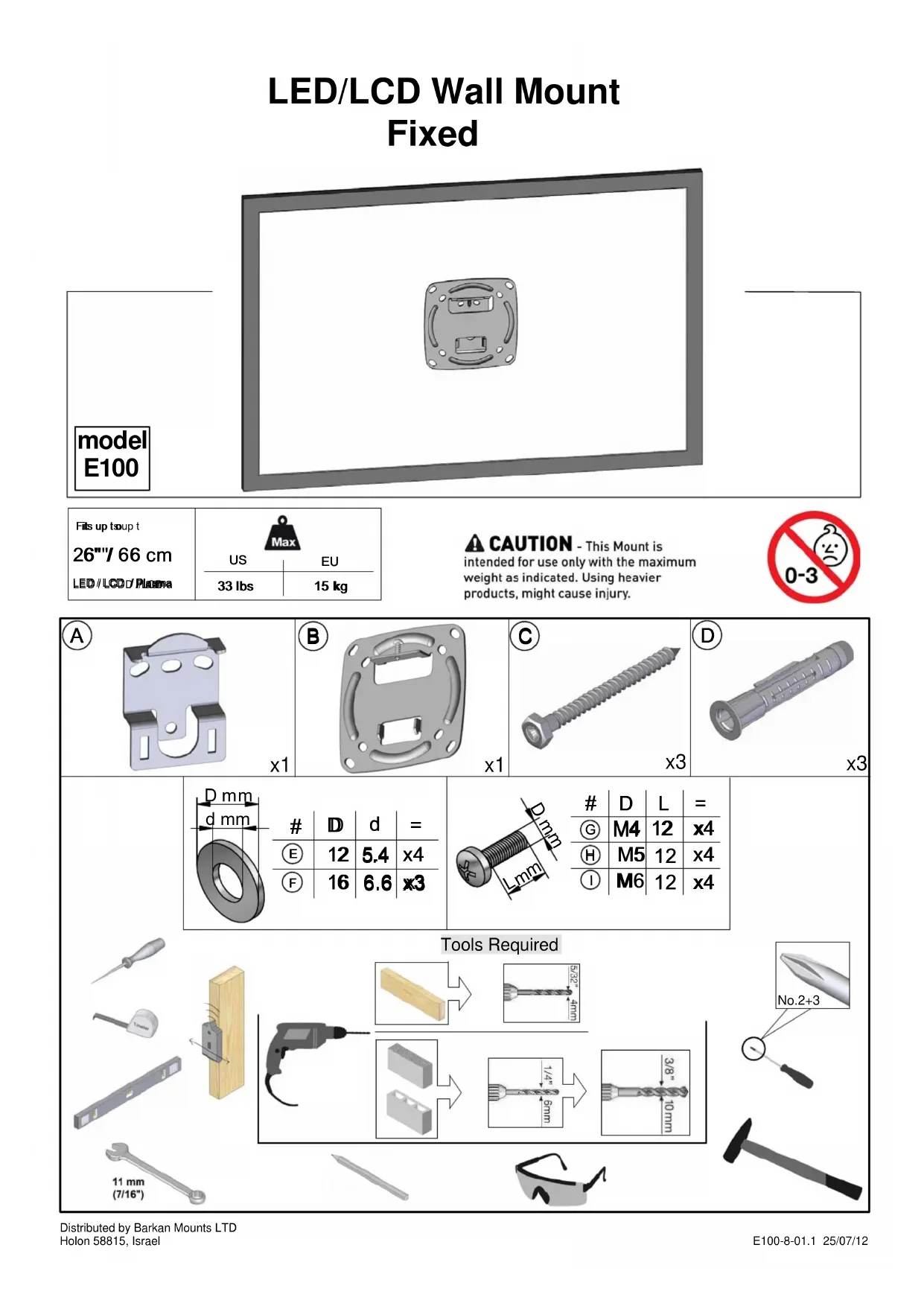 E100 - Support mural Barkan - Notice d'utilisation et mode d'emploi gratuit