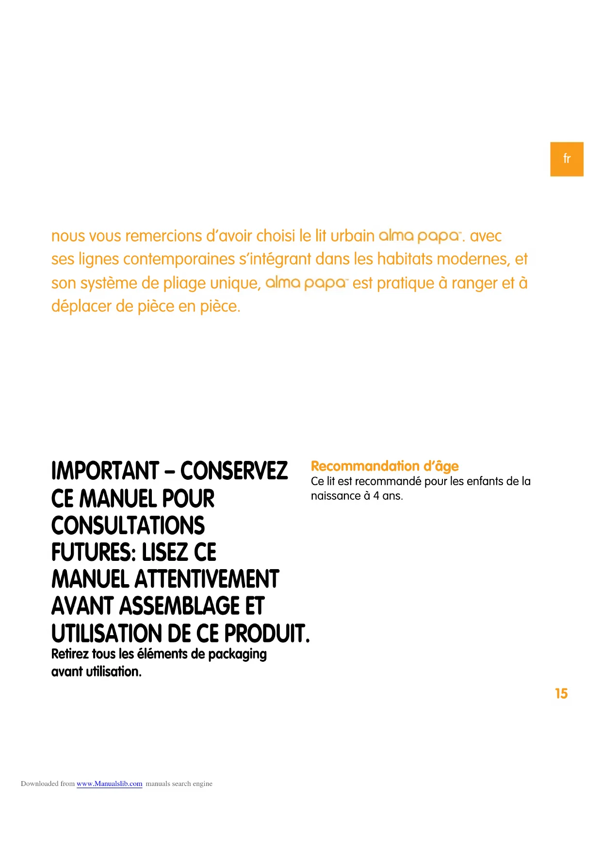 Alma Papa - Lit bébé Bloom - Notice d'utilisation et mode d'emploi gratuit