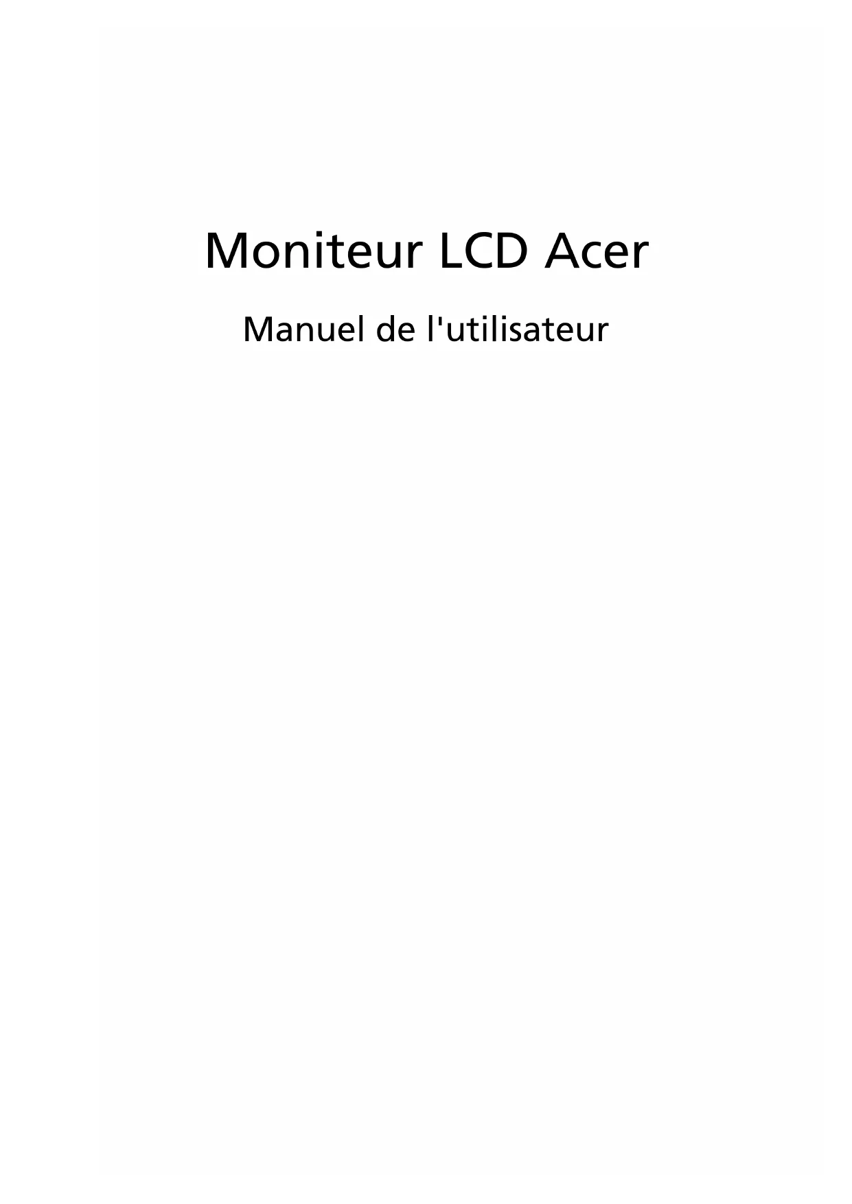 - Faites régulièrement de l’exercice et maintenez-vous en forme.CB271HU CB271HU1 Remarques particulières concernant les moniteurs LCD iii Informations concernant votre sécurité et votre confort iii Instructions de séclurité iii Nettoyage du moniteur iii Branchement/débranchement de l’appareil iii Accessibilité iv Liste des mesures de sécurité iv Avertissements iv Utilisation de l’énergie électrique v Dépannage du produit vi Consignes de sécurité complémentaires vi Consignes de mise au rebut vii Énoncé sur les pixels des écrans LCD vii Conseils et informations pour un confort d’utilisation viii Federal Communications Commission Declaration of Conformity xi Déballage Fixation/dépose de la base Réglage de la position de l’écran Branchez le cordon d’alimentation Économie d’énergie Display Data Channel (DDC) Connector pin assignment Tableau du timing standard Installation Commandes utilisateur Comment régler un paramètre Acer eColor Management Utilisateur Dépannage Mode HDMI/DVI/DP