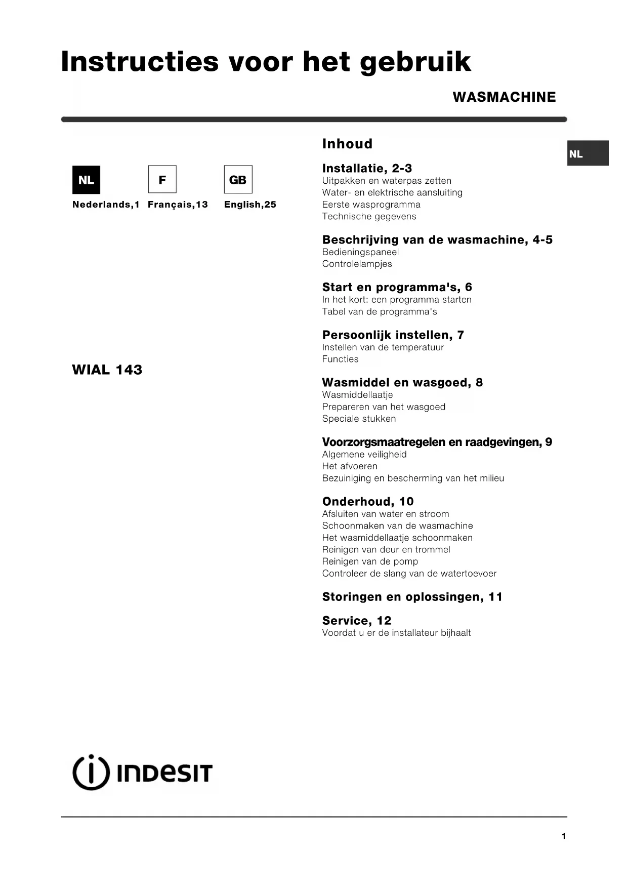 Retrouvez gratuitement la notice de l'appareil WIAL 143 (EU) INDESIT au format PDF.