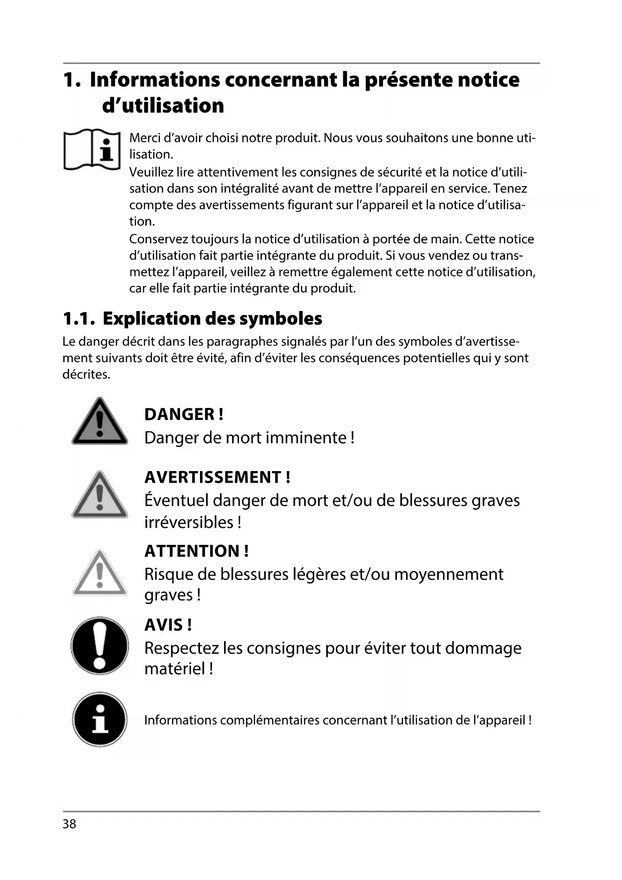 1. Informations concernant la présente notice d’utilisation ...................... 38