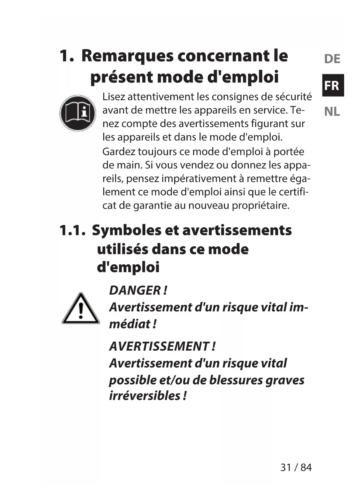 d'emploi ....................................................... 31 1.1. Symboles et avertissements utilisés dans ce mode d'emploi ...........................31
