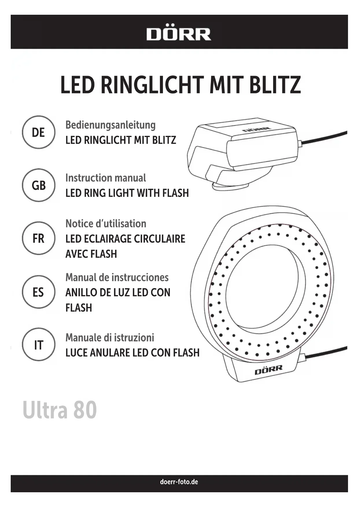 LED Ring Light with Flash Ultra 80 - Lampe Dörr - Notice d'utilisation et mode d'emploi gratuit