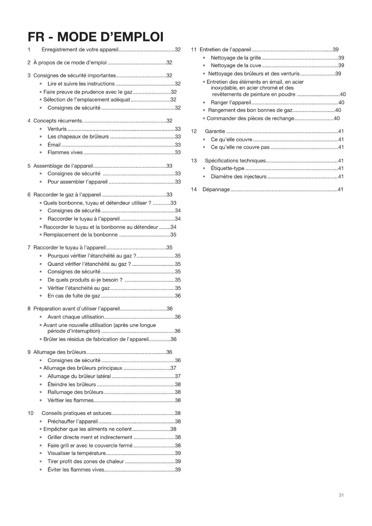 - Vérltier l’étanchéité au gaz ............................................ 35