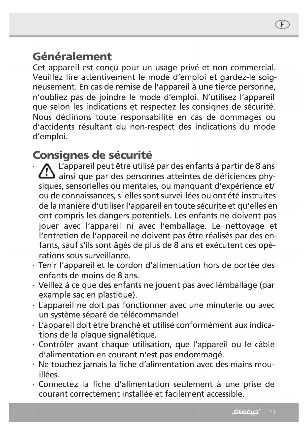 Retrouvez gratuitement la notice de l'appareil RK 1 M STEBA au format PDF.
