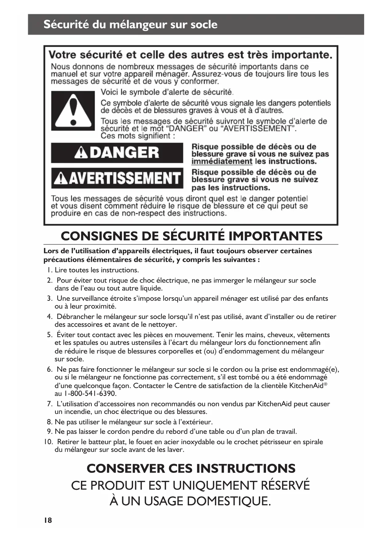 W10410027A_.indd 17 12/15/11 11:40 AM18 Sécurité du mélangeur sur socle Lors de l’utilisation d’appareils électriques, il faut toujours observer certaines précautions élémentaires de sécurité, y compris les suivantes :