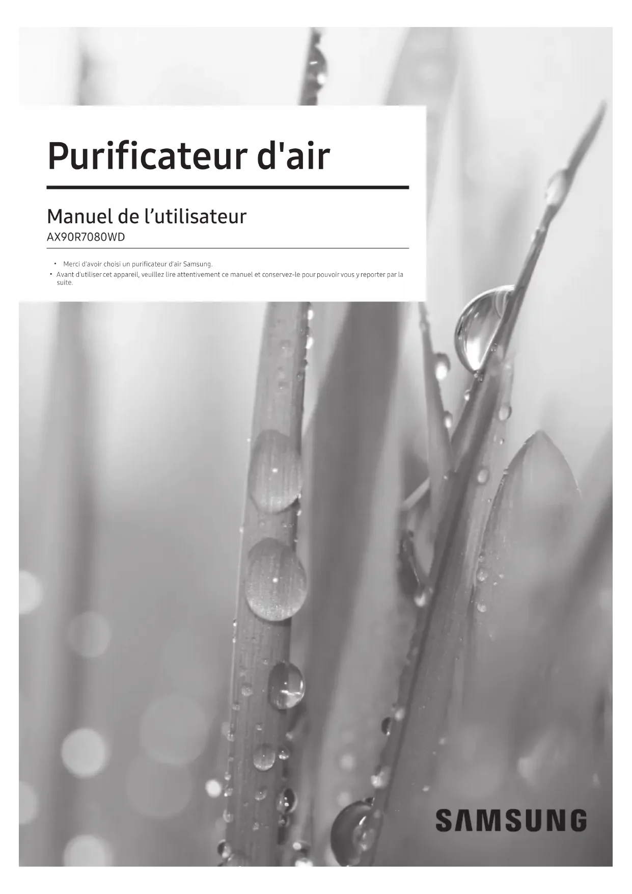 AX90R7080WD - Purificateur d'air SAMSUNG - Notice d'utilisation et mode d'emploi gratuit