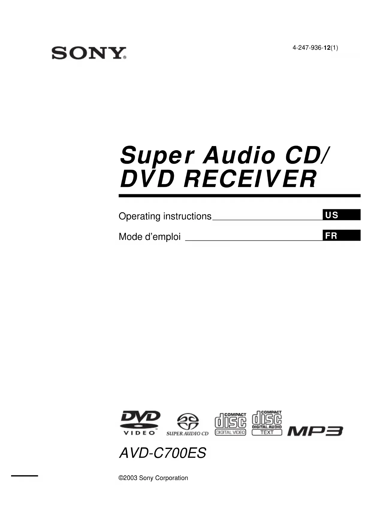 Retrouvez gratuitement la notice de l'appareil AVDC700ES SONY au format PDF.