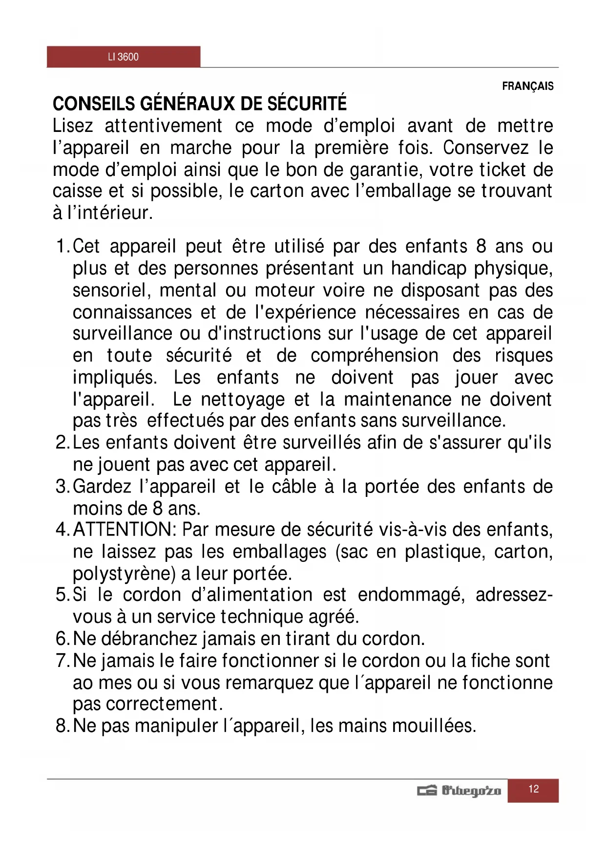 MODE D'EMPLOI LI 3600 Orbegozo