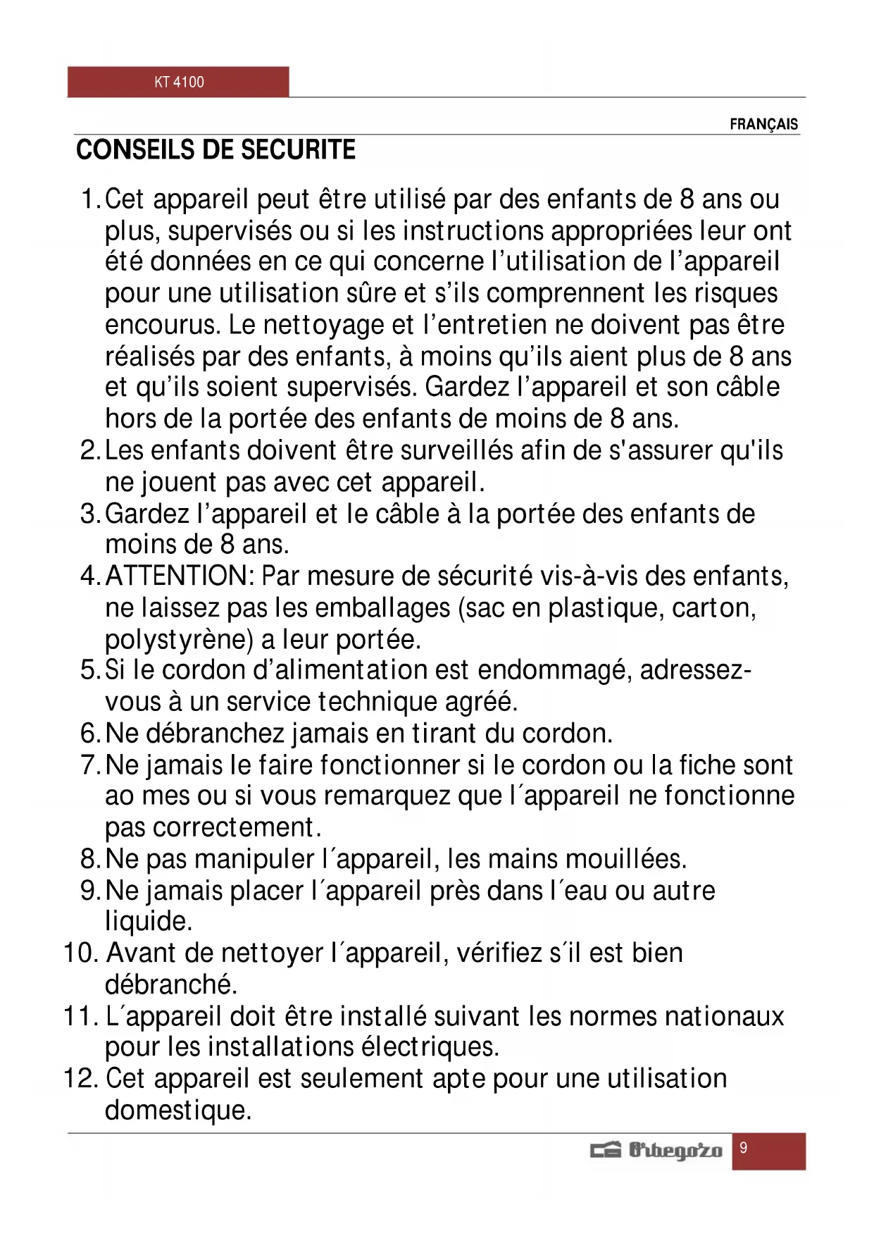 MODE D'EMPLOI KT 4100 Orbegozo