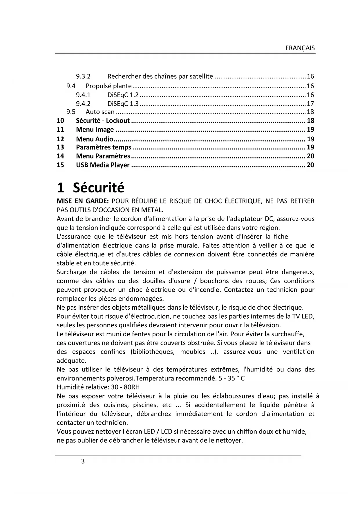 9.1.2! Rechercher des chaînes par satellite ................................................... 14!