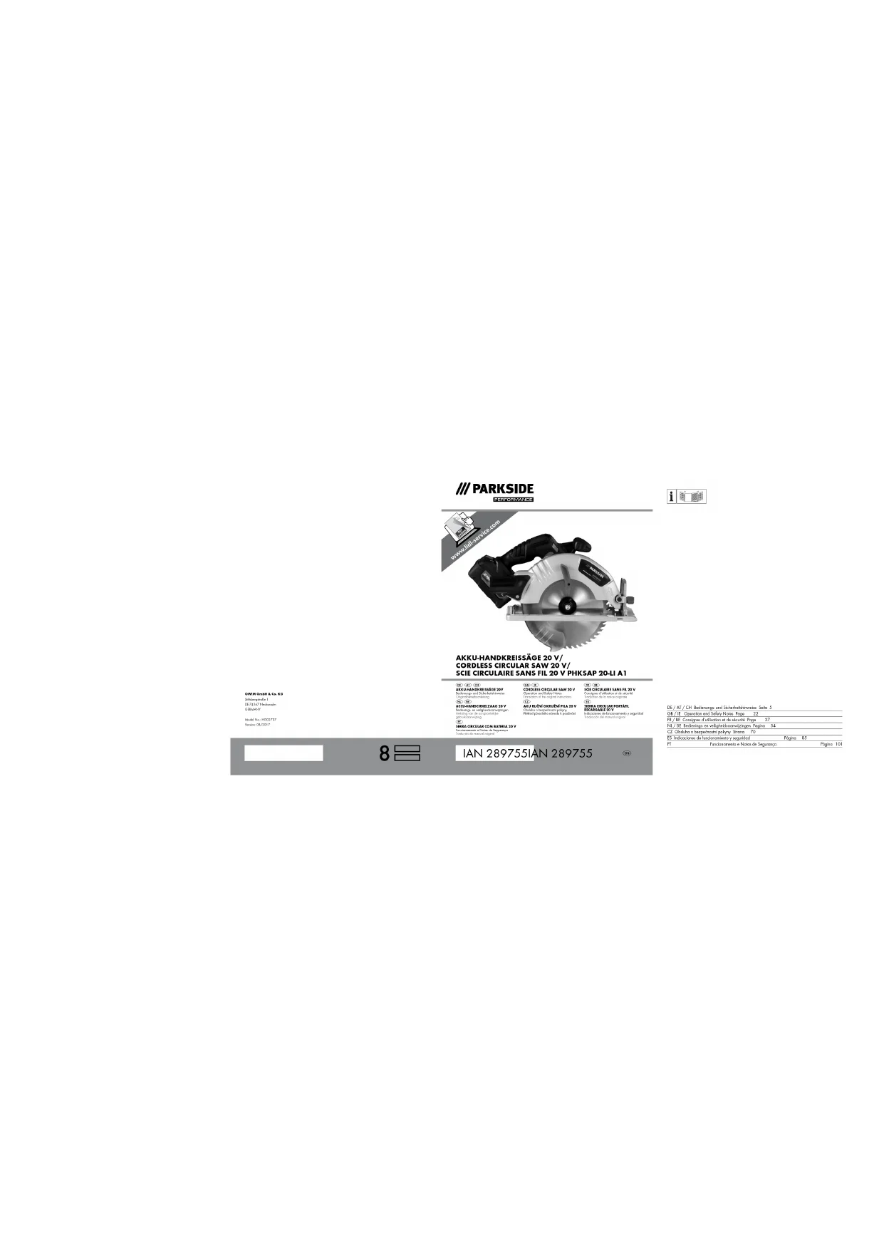 PHKSAP 20Li A1 - Scie PARKSIDE - Notice d'utilisation et mode d'emploi gratuit