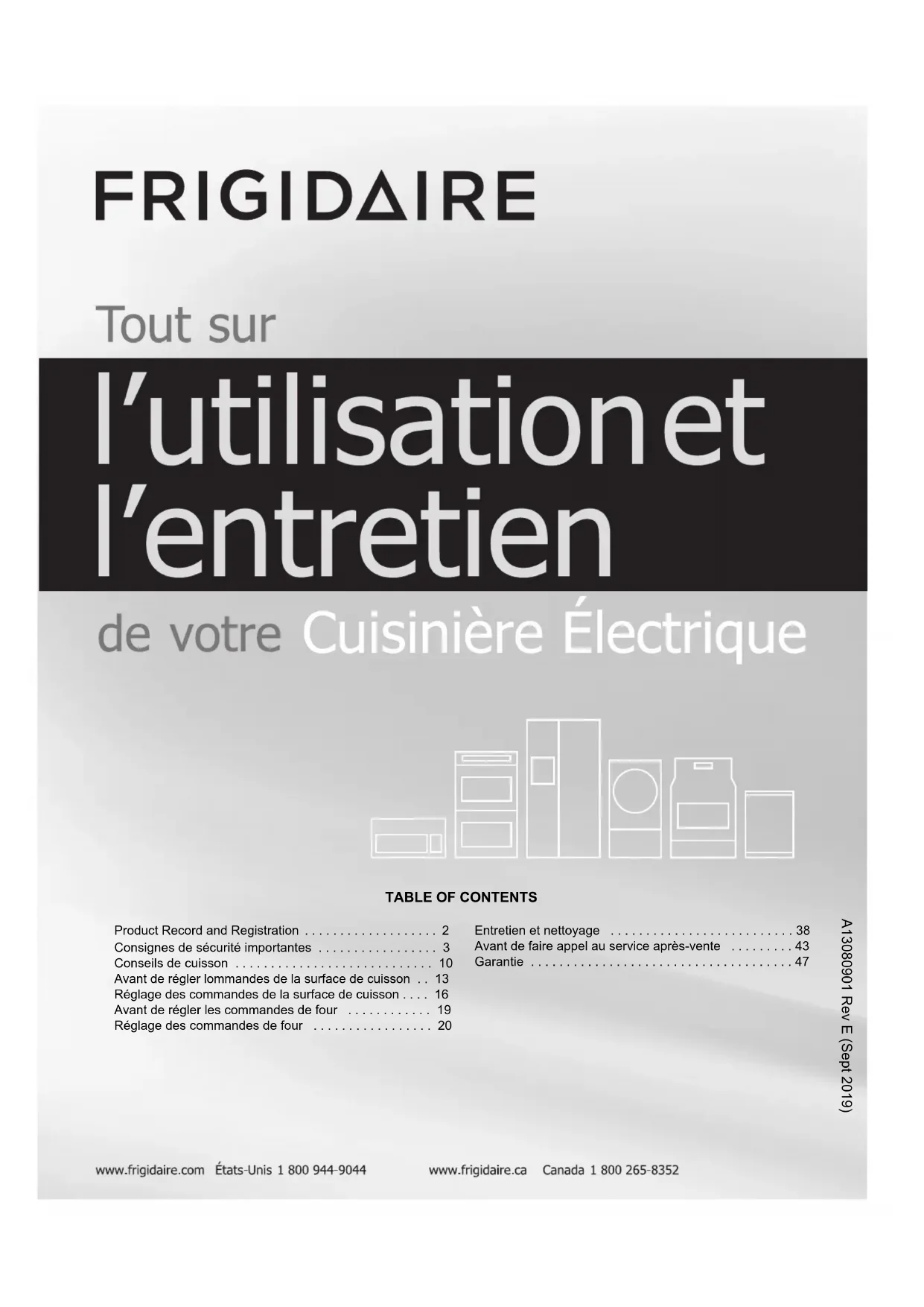 Des questions? Pour joindre sans frais le service de soutien technique aux États-Unis et au Canada, téléphonez au 1-800-944-9044 Pour une aide en ligne et des renseignements sur le produit disponibles en ligne, allez sur : www.frigidaire.com. Merci d'avoir choisi Frigidaire Ce guide d’utilisation et d’entretien fait partie de notre engagement à vous satisfaire et à vous fournir un produit de qualité pendant toute la durée de vie de votre nouvel appareil. Nous considérons votre achat comme le début d'une relation. Pour vous assurer que nous pourrons continuer à vous servir, veuillez inscrire sur cette page les renseignements importants concernant ce produit. Besoin d’aide? Visitez le site Web de Frigidaire à l'adresse www.frigidaire.com Avant de contacter le service à la clientèle, il vous est possible d'effectuer un certain nombre de choses qui pourront nous aider à mieux vous servir. Lisez ce manuel d'utilisation et d'entretien Il contient des instructions qui vous permettent d'utiliser et d'entretenir correctement votre four.3 Enregistrer ces instructions pour référence future