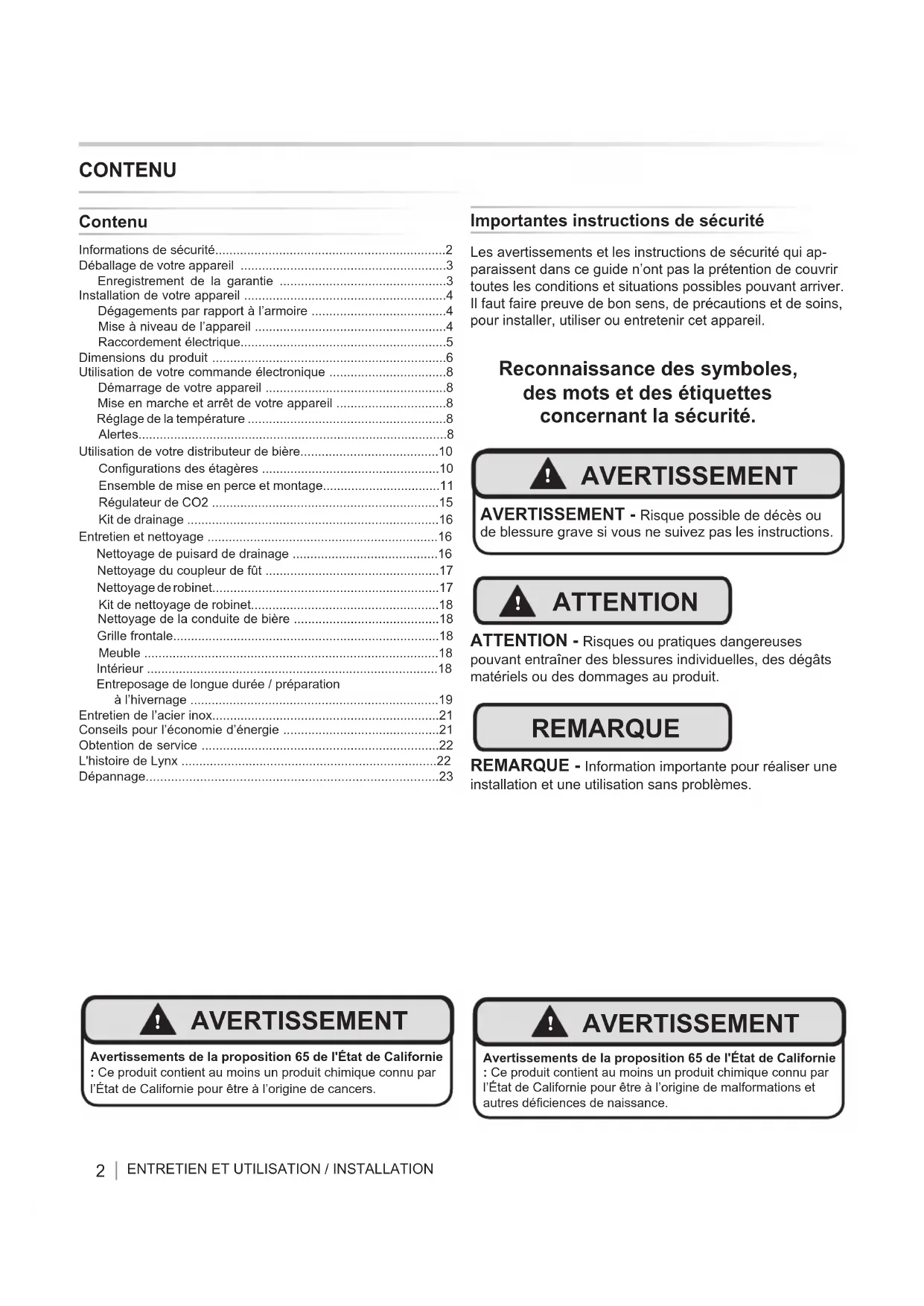 LM24BFL - Réfrigérateur LYNX - Notice d'utilisation et mode d'emploi gratuit