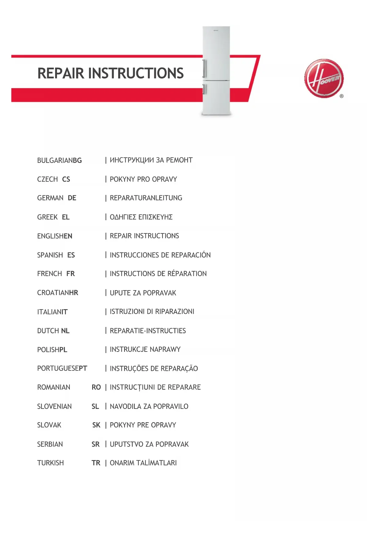 HVOL 124 - Réfrigérateur HOOVER - Notice d'utilisation et mode d'emploi gratuit