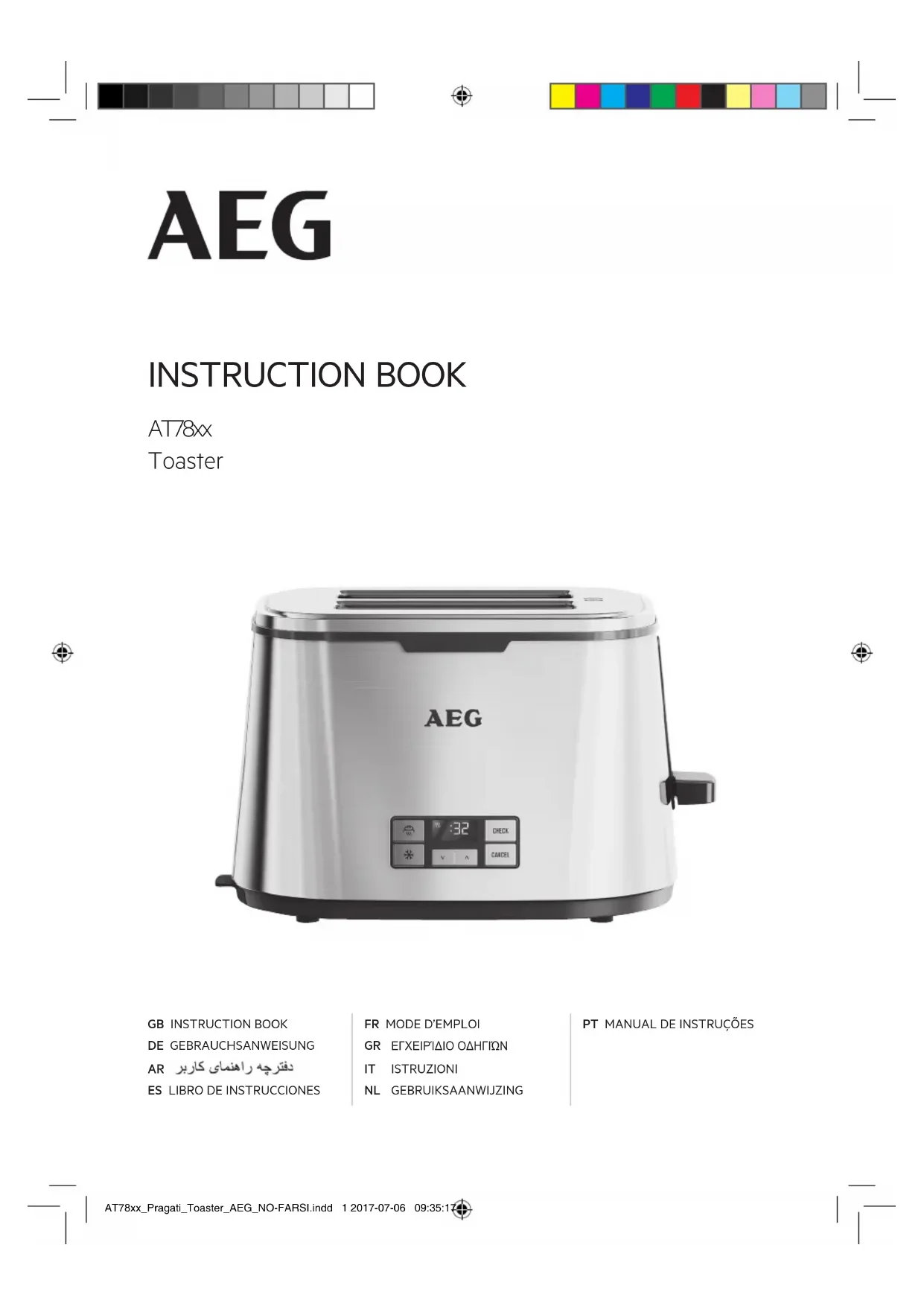 - L’appareil et son cordon d’alimentation doivent être conservés hors de portée des enfants âgés de moins de 8 ans. AT78xx_Pragati_Toaster_AEG_NO-FARSI.indd 12 2017-07-06 09:35:2113 www.aeg.com