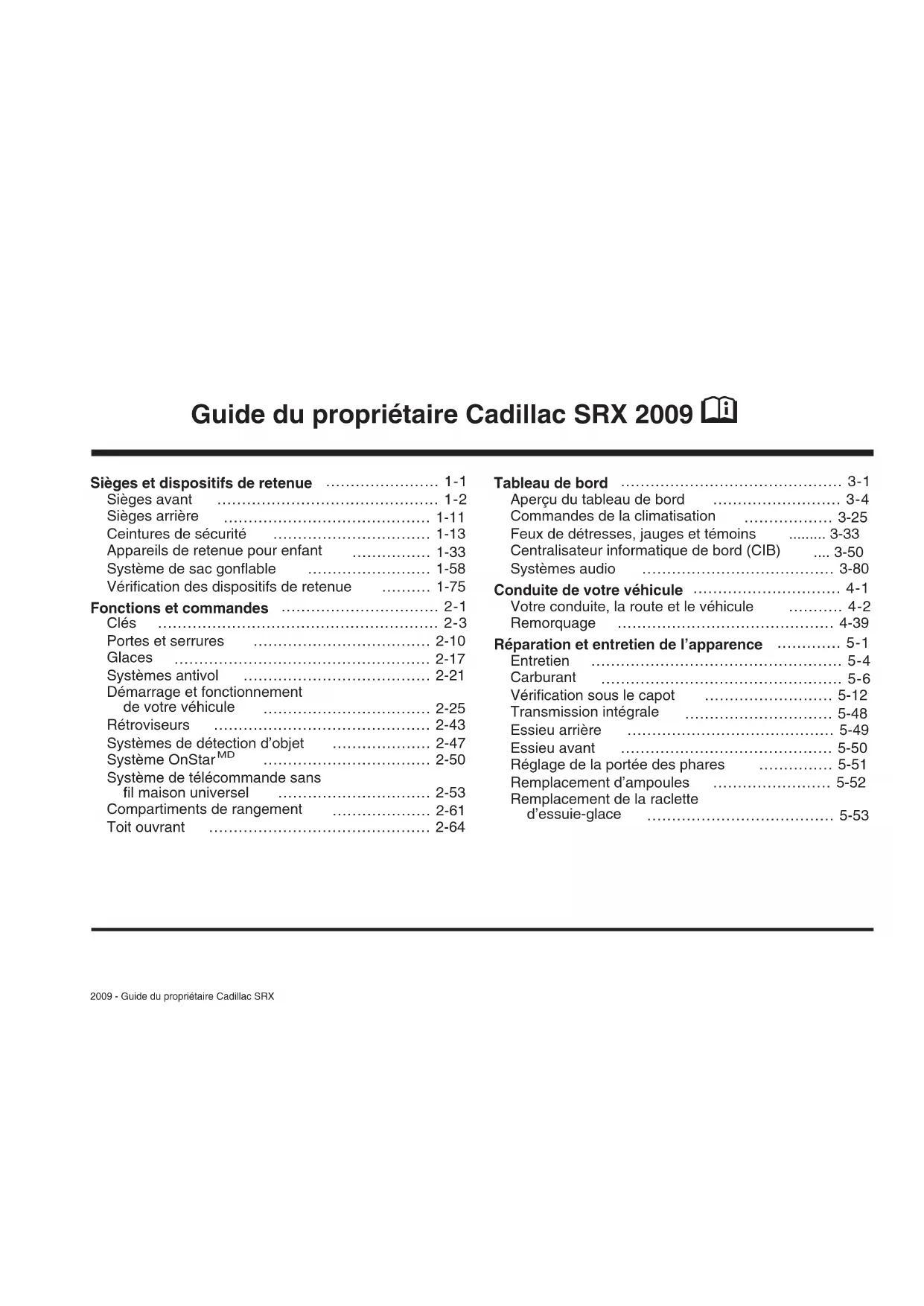 2009 - Guide du propriétaire pour SRX de Cadillac