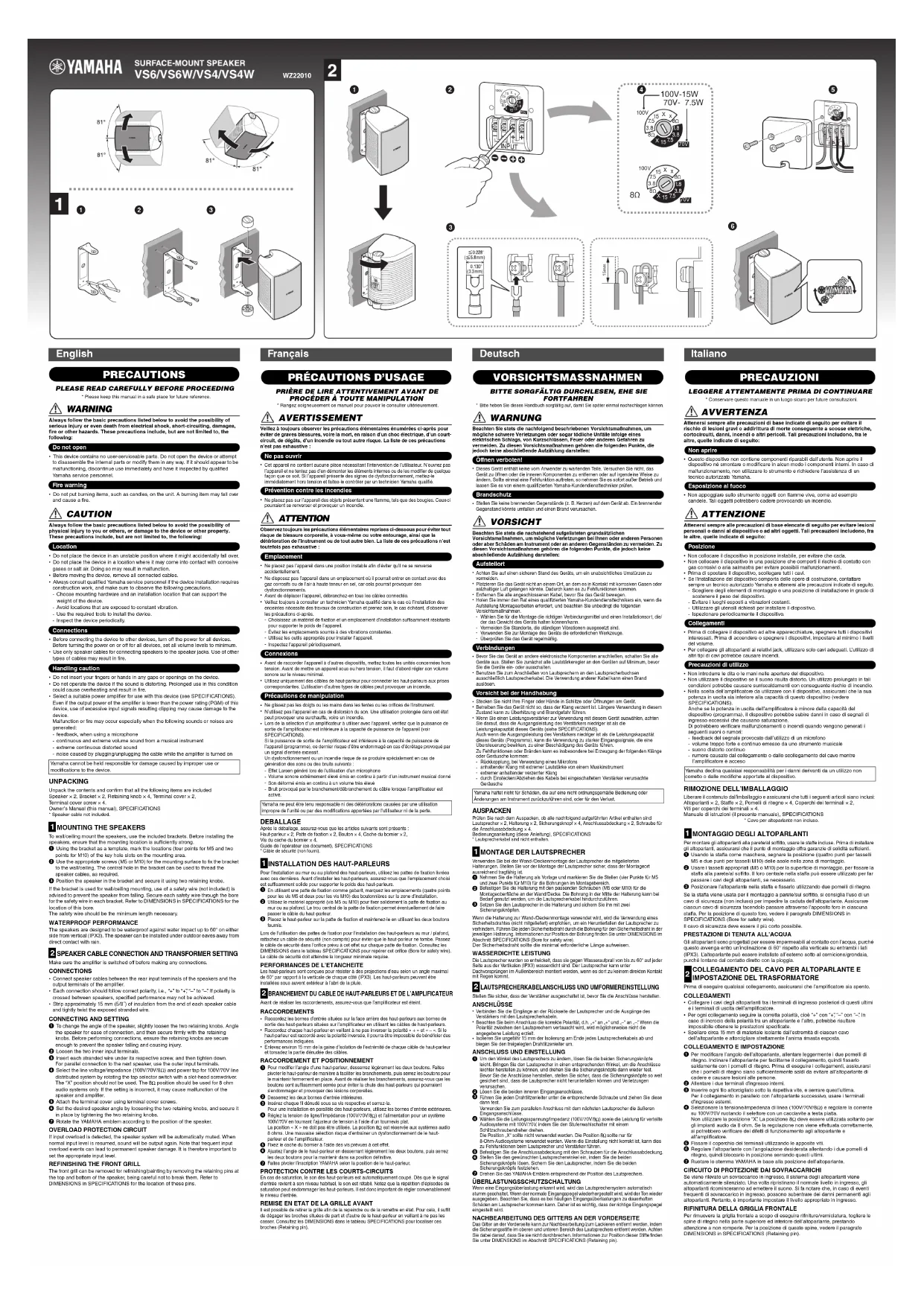 VS6 - Haut-parleur YAMAHA - Notice d'utilisation et mode d'emploi gratuit