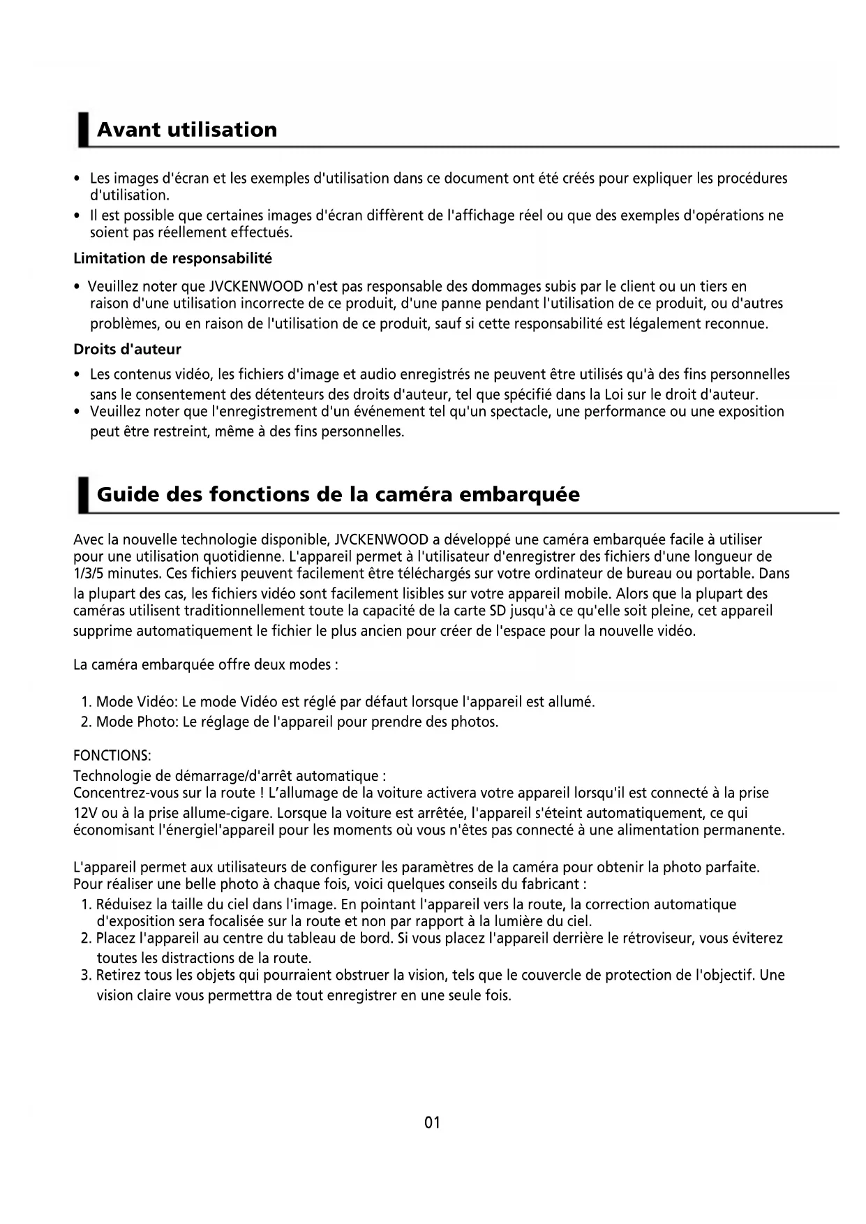 Table des matièresAvant utilisation Guide des fonctions de la caméra embarquée