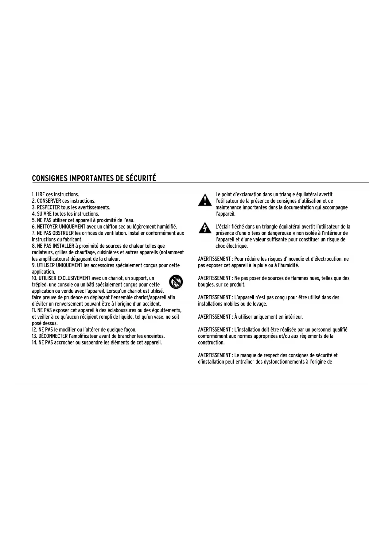 AVERTISSEMENT : Le manque de respect des consignes de sécurité et