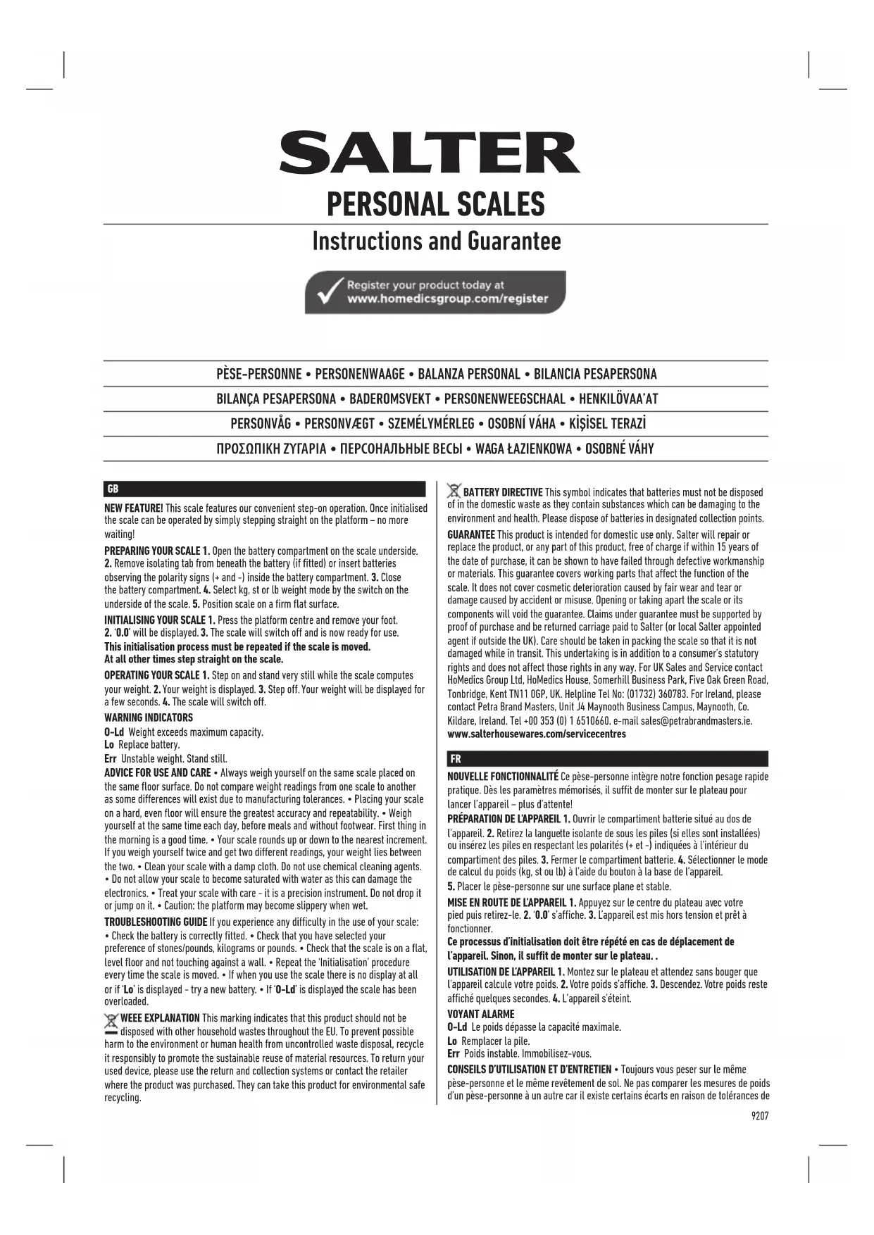 Retrouvez gratuitement la notice de l'appareil 9207 BK3R SALTER au format PDF.