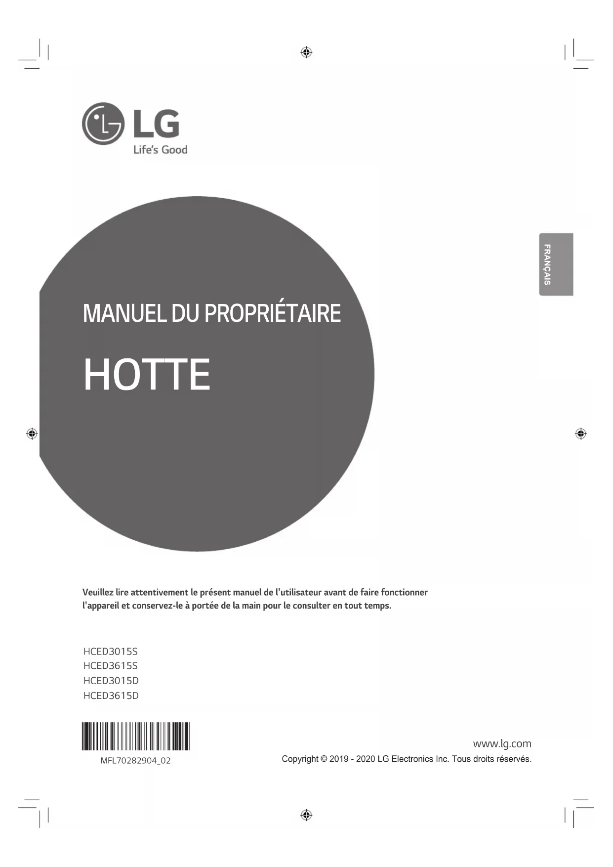 HOTTE Veuillez lire attentivement le présent manuel de l'utilisateur avant de faire fonctionner l'appareil et conservez‑le à portée de la main pour le consulter en tout temps. www.lg.com HCED3015S HCED3615S HCED3015D HCED3615D MFL70282904_02 Copyright © 2019 - 2020 LG Electronics Inc. Tous droits réservés.2