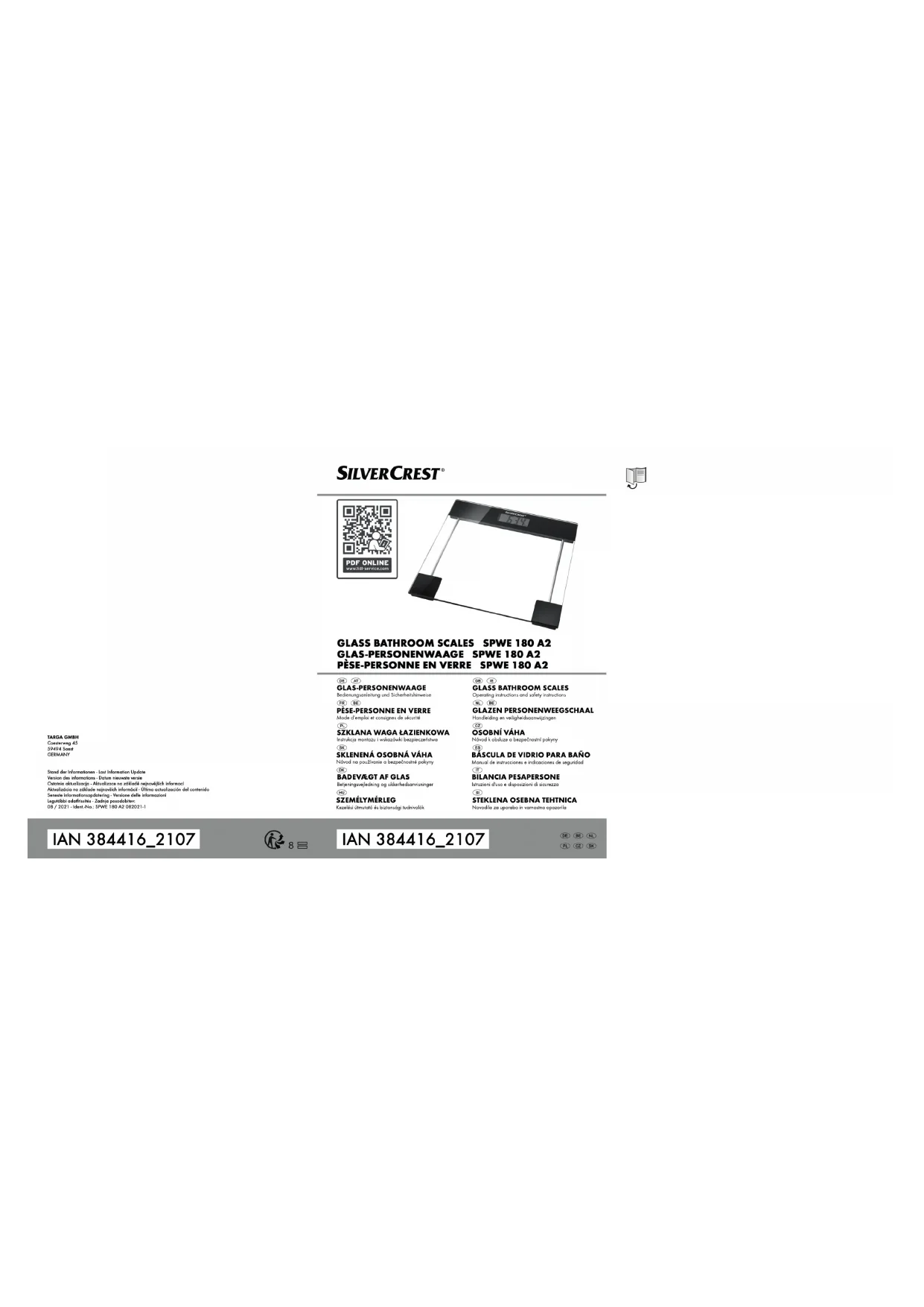 Retrouvez gratuitement la notice de l'appareil SPWE 180 A1 SILVERCREST au format PDF.
