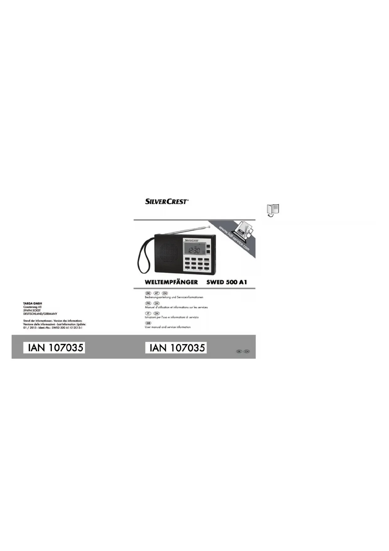 SWED 500 A1 - Radio SILVERCREST - Notice d'utilisation et mode d'emploi gratuit