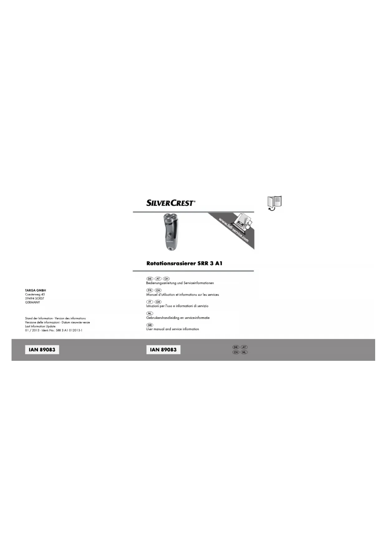 Retrouvez gratuitement la notice de l'appareil SRR 3 A1 SILVERCREST au format PDF.