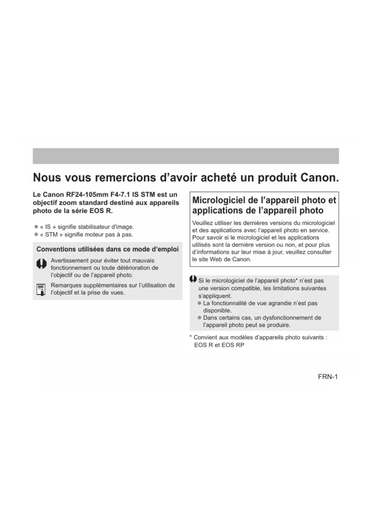 MODE D'EMPLOI RF 24105mm F47.1 IS STM CANON