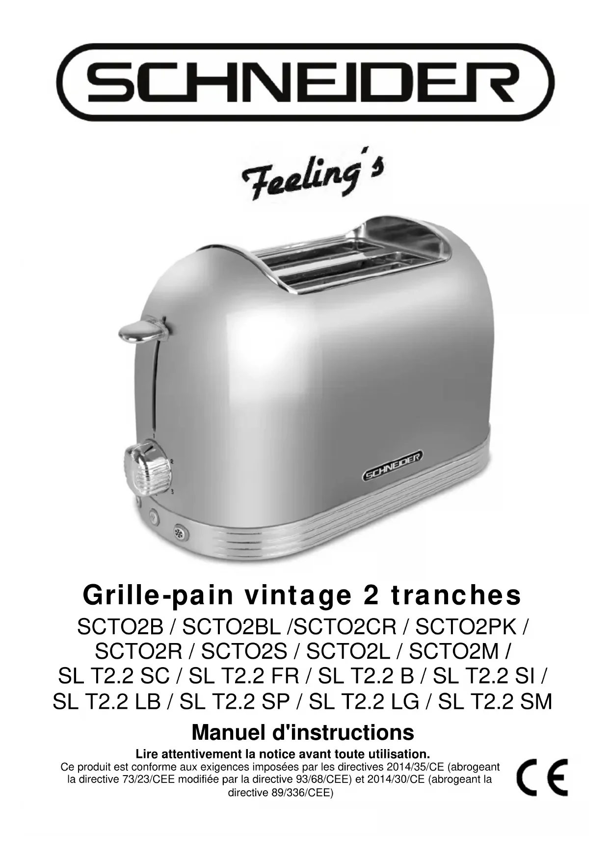 Téléchargez la notice de votre Grille pain au format PDF gratuitement ! Retrouvez votre notice SL T2.2 SC - SCHNEIDER et reprennez votre appareil électronique en main. Sur cette page sont publiés tous les documents nécessaires à l'utilisation de votre appareil SL T2.2 SC de la marque SCHNEIDER.