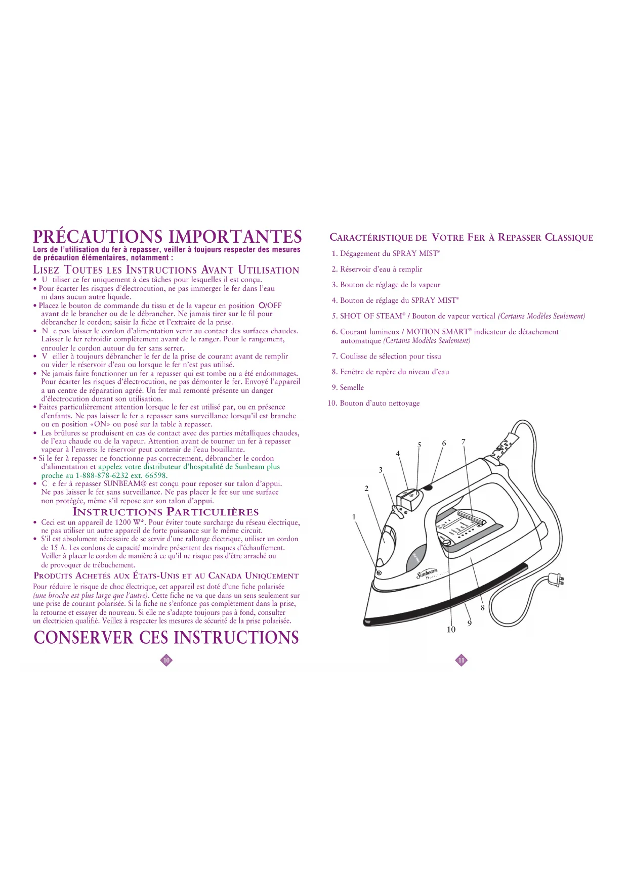 Classic 3965099 - Fer à repasser SUNBEAM - Notice d'utilisation et mode d'emploi gratuit
