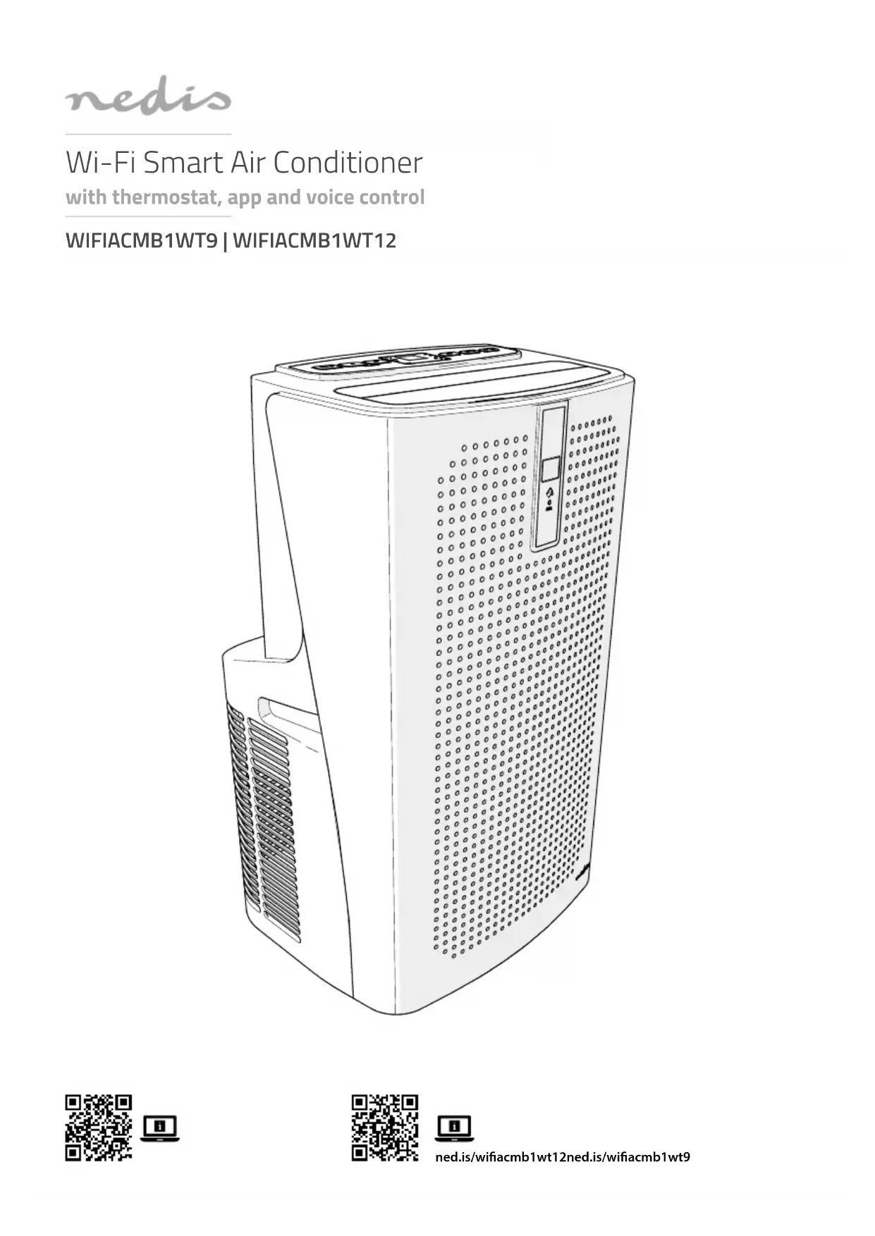 Guide de démarrage rapide Climatiseur Wi-Fi Smart WIFIACMB1WT9 WIFIACMB1WT12 Pour plus d'informations, consultez le manuel détaillé en ligne: ned.is/wiacmb1wt9 | ned.is/wiacmb1wt12 Utilisation prévue Le WIFIACMB1WT9 | WIFIACMB1WT12 Nedis est un climatiseur mobile utilisé pour le refroidissement et la déshumidication des pièces.Le produit peut être contrôlé avec l'application Nedis SmartLife via une connexion Wi-Fi depuis n'importe où.Le produit est exclusivement conçu comme un climatiseur mobile pour une utilisation domestique en intérieur.Le produit n’est pas destiné à un usage professionnel.Toute modication du produit peut avoir des conséquences sur la sécurité, la garantie et le bon fonctionnement. Pièces principales (image A)