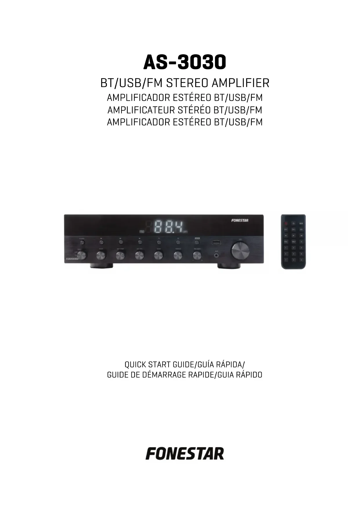 DÉCLARATION UE DE CONFORMITÉ SIMPLIFIÉE FONESTAR SISTEMAS S.A. déclare que le amplificateur stéréo AS-3030 est conforme à la Directive 2014/53/EU. Le texte compler de la déclaration UE de conformité se trouve disponible sur le site Internet suivant: fonestar.com/ES/AS-3030