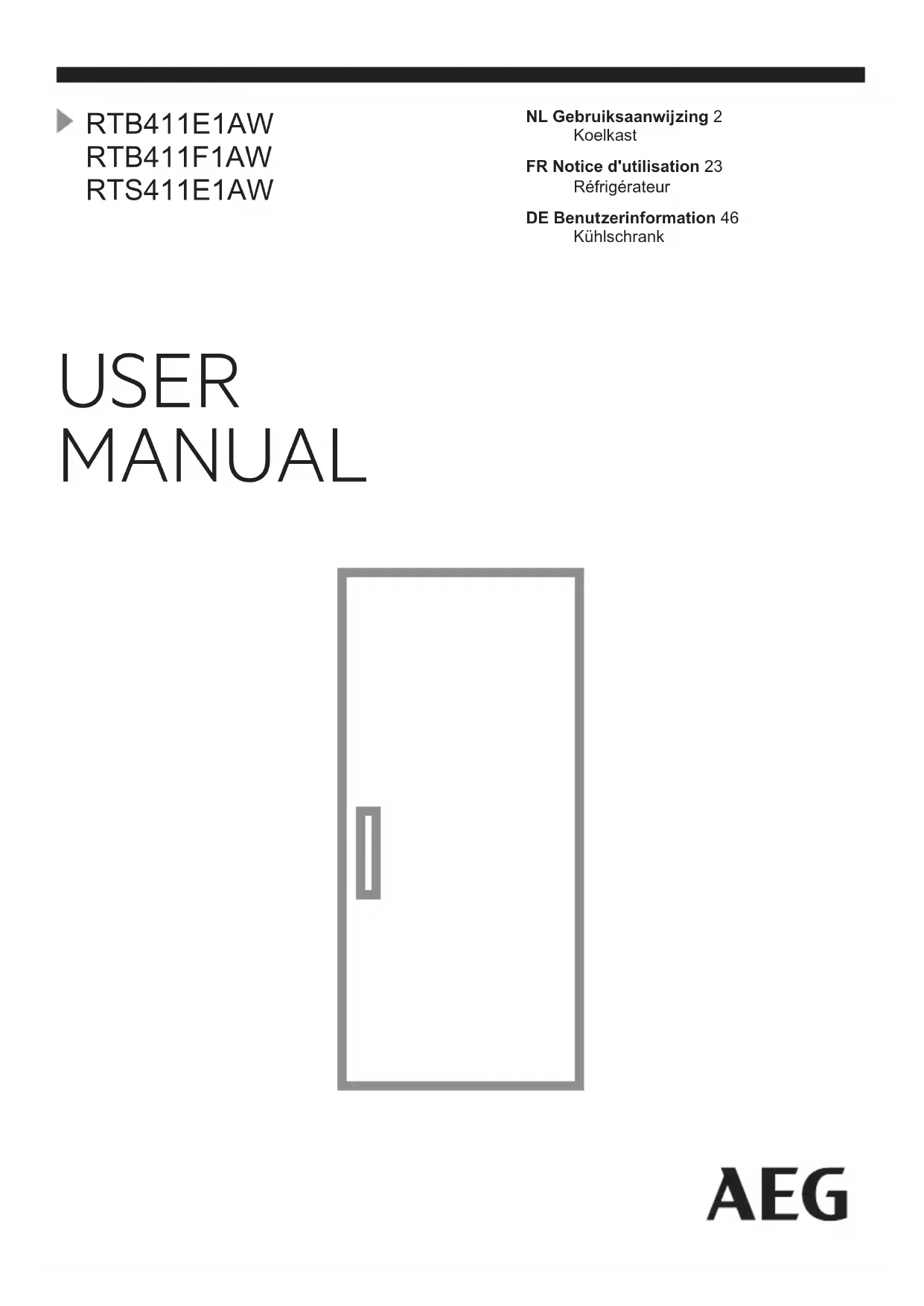 RTB411F1AW - Réfrigérateur AEG - Notice d'utilisation et mode d'emploi gratuit