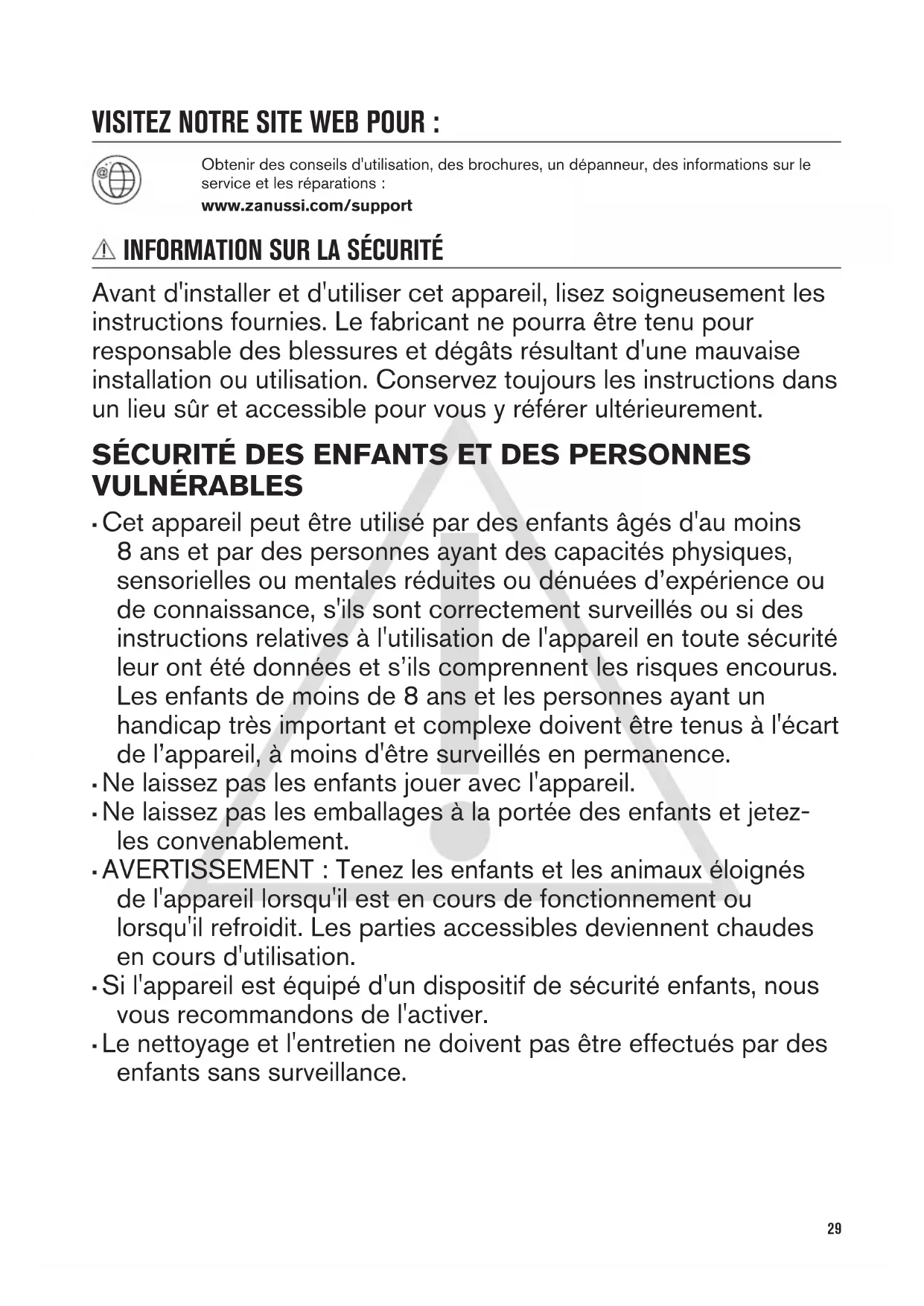 - Le nettoyage et l'entretien ne doivent pas être effectués par des enfants sans surveillance. 29CONSIGNES GÉNÉRALES DE SÉCURITÉ