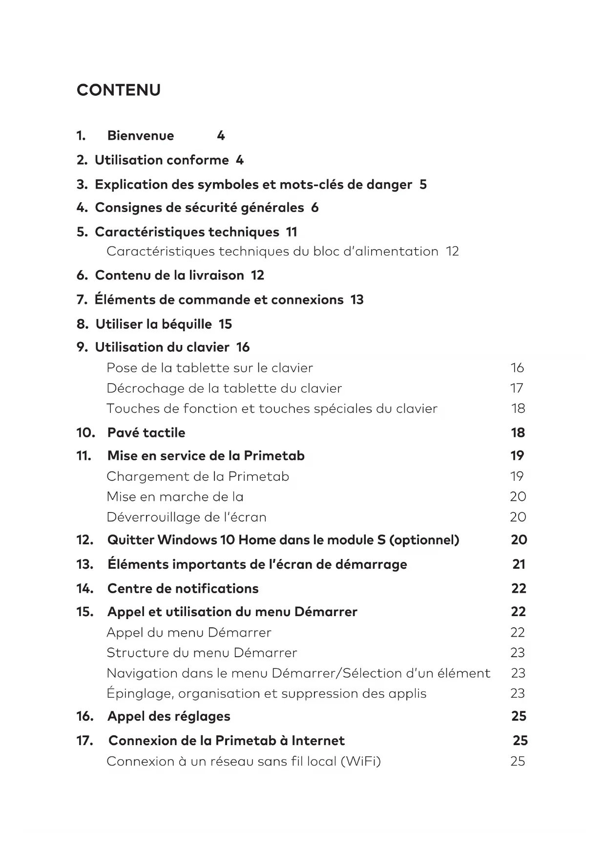 Nous espérons que votre nouvelle Primetab S11B. vous donnera entière satisfaction. Le mode d’emploi, le guide rapide et le fascicule « Sécurité du produit et mentions légales » font partie du produit. Veuillez lire attentivement les trois documents avant de mettre en service votre appareil. Ils contiennent des informations importantes sur l’utilisation, la sécurité et l’élimination de l’appareil. Conservez ces documents avec soin et remettez-les en entier à son nouveau propriétaire en cas de transmission de l’appareil à une autre personne. Familiarisez-vous avec les instructions et les consignes de sécurité pour optimiser au maximum l’utilisation de l’appareil et le protéger contre d’éventuels dangers. Ce mode d’emploi décrit les fonctions de base de la Primetab. Pour obtenir des informations sur l’utilisation des différentes applis, consultez les instructions les concernant. Vous trouverez d’autres conseils intéressants et pratiques relatifs à Windows10 sur: www.microsoft.com/fr-fr/windows/emulator