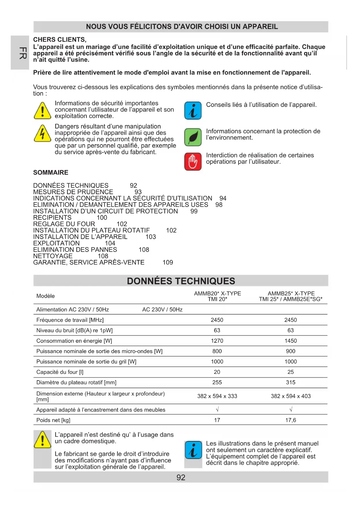 - Richtlinie RoHS 2011/65/EG Das Gerät ist mit dem Zeichen gekennzeichnet und verfügt über eine Konformitätserklärung zur Einsichtnahme durch die zuständigen Marktüberwa- chungsbehörden.92 L’appareilestunmariaged’unefacilitéd’exploitationuniqueetd’uneefcacitéparfaite.Chaqueappareilaétéprécisémentvériésousl’angledelasécuritéetdelafonctionnalitéavantqu’iln’aitquittél’usine.Prièredelireattentivementlemoded'emploiavantlamiseenfonctionnementdel'appareil.CHERSCLIENTS, NOUSVOUSFÉLICITONSD'AVOIRCHOISIUNAPPAREIL Vous trouverez ci-dessous les explications des symboles mentionnés dans la présente notice d’utilisa- tion :Interdiction de réalisation de certaines opérations par l’utilisateur.Dangers résultant d’une manipulation inappropriée de l’appareil ainsi que des opérations qui ne pourront être effectuées que par un personnel qualié, par exemple du service après-vente du fabricant.L’appareil n’est destiné qu’ à l’usage dans un cadre domestique.Le fabricant se garde le droit d’introduire des modications n’ayant pas d’inuence sur l’exploitation générale de l’appareil.Informations de sécurité importantes concernant l’utilisateur de l’appareil et son exploitation correcte.Conseils liés à l’utilisation de l’appareil.