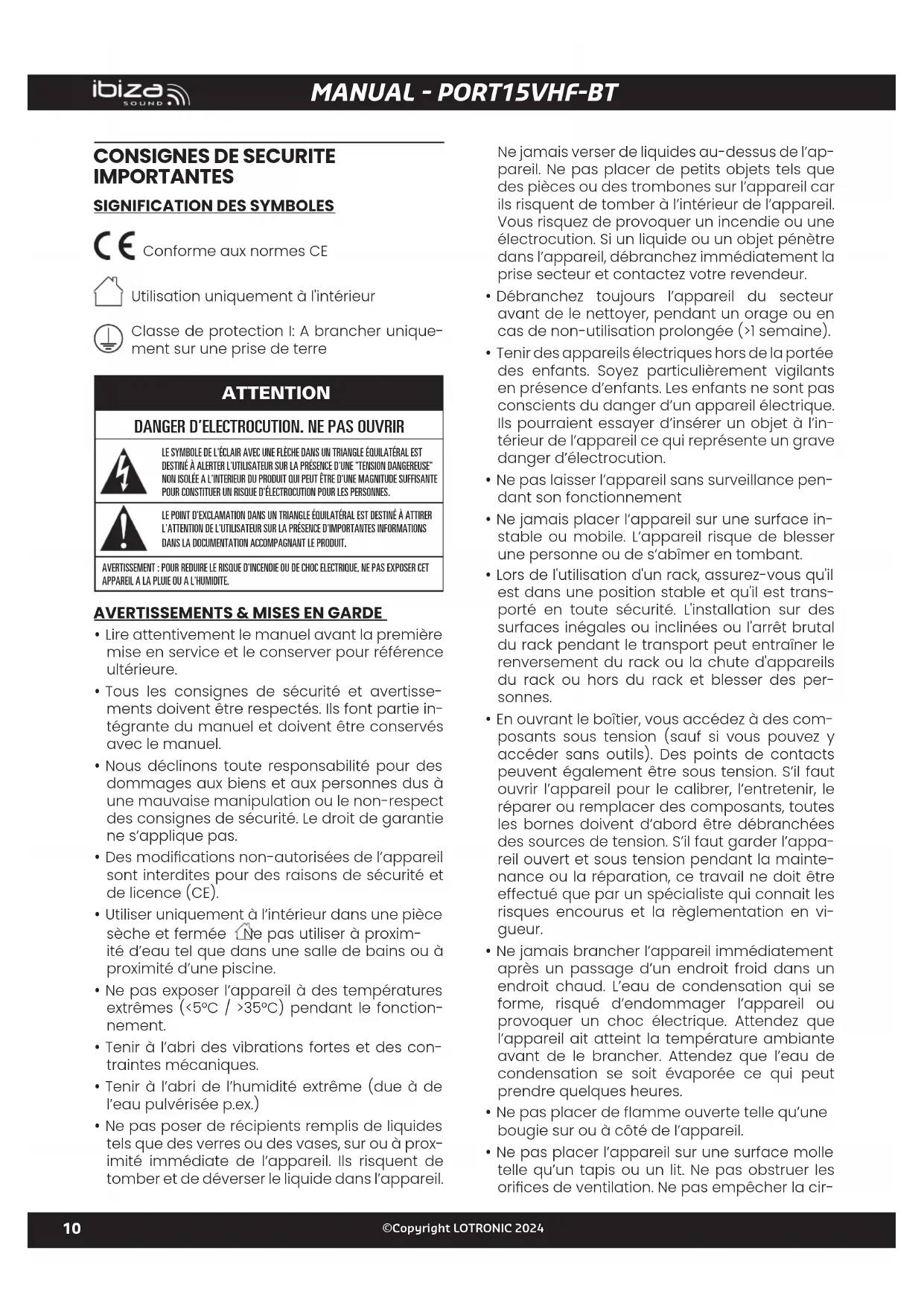 MODE D'EMPLOI PORT15VHFBT IBIZA SOUND