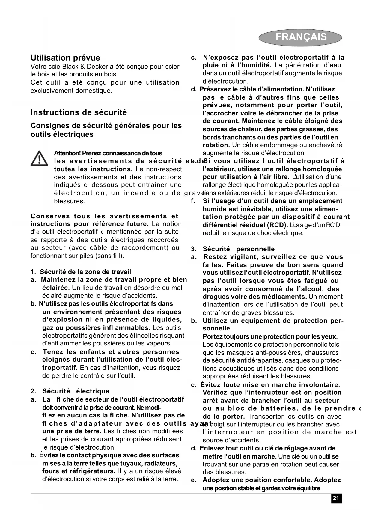 MODE D'EMPLOI CD602 BLACK & DECKER
