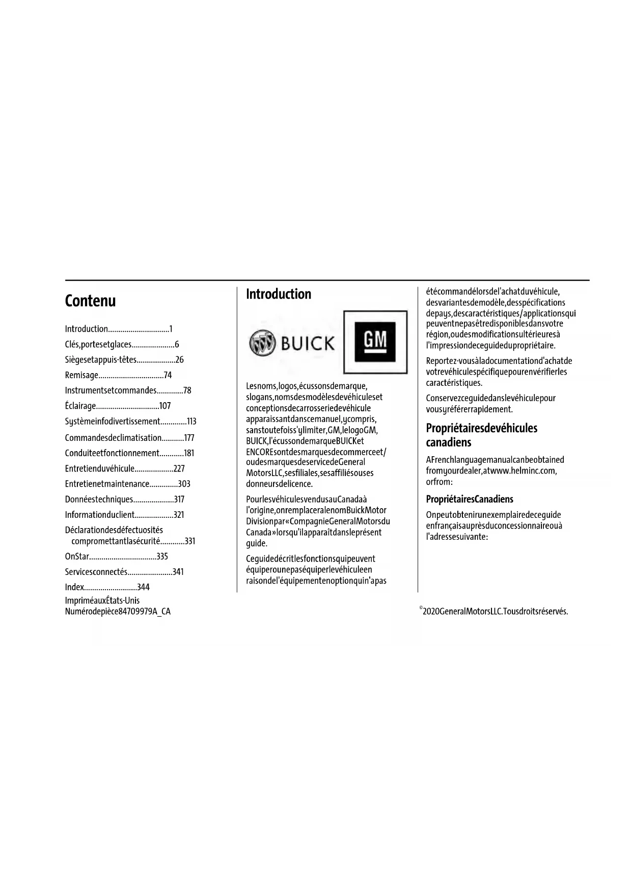 - 21_BUI_Encore_COV_fr_CA_84709979A_CA_2020JUNE18.pdf 1 5/27/2020 9:09:09 AMBuick Encore Owner Manual (GMNA-Localizing-U.S./Canada-14607636) - 2021 - crc - 6/9/20 Contenu Introduction p. 1