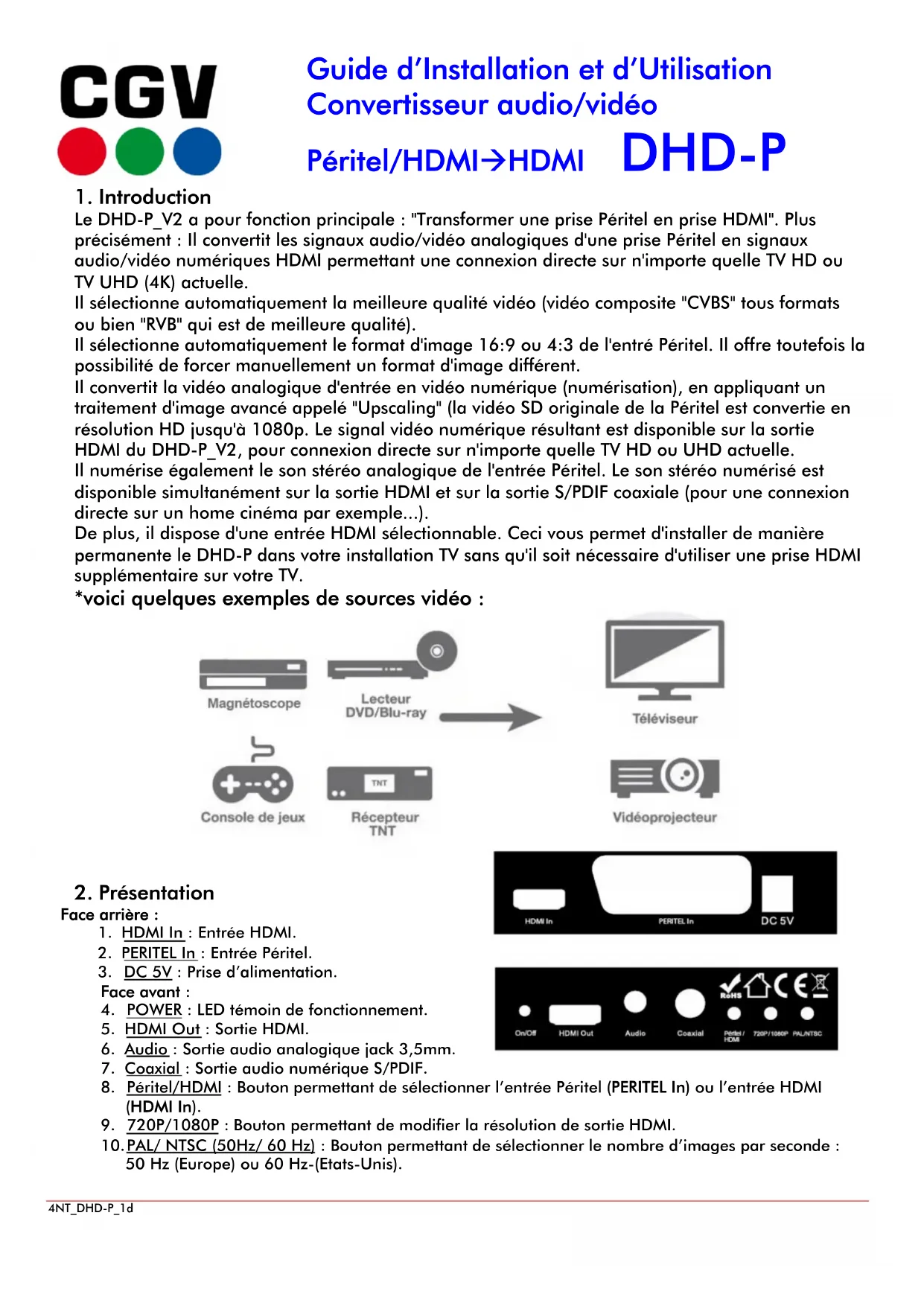 4NT_DHD-P_1d Guide d’Installation et d’Utilisation Convertisseur audio/vidéo Péritel/HDMIHDMI DHD-P