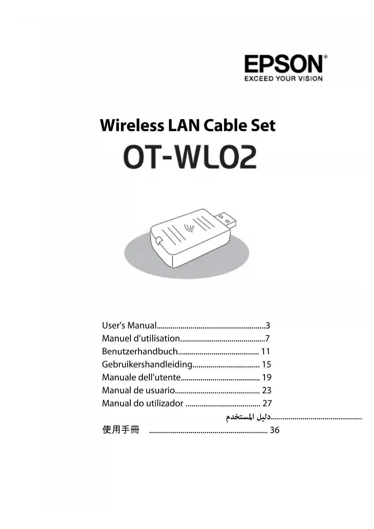 Si vous souhaitez fixer l’unité réseau sans fil, coupez le ruban de fixation fourni selon les besoins et placez-le sur l’unité, puis fixez l’unité dans un lieu où la communication est bonne. Câble de rallonge USB Couvercle en caoutchouc Unité réseau sans fil Ruban de fixation10 Connexion au réseau Pour la méthode de connexion de l’imprimante TM au réseau avec ce produit, consultez le document OT-WL02 Technical Reference Guide (Guide de référence technique). Le OT-WL02 Technical Reference Guide (Guide de référence technique) peut être téléchargé à partir de l'adresse suivante: http://www.epson-biz.com/?prd=ot-wl02&inf=trg Signification du voyant de réseau sans fil La position du voyant de réseau sans fil est indiquée sur l’illustration ci-dessous. : Clignotant : Allumé : Éteint EPSON est une marque déposée de Seiko Epson Corporation. Exceed Your Vision est une marque commerciale ou déposée de Seiko Epson Corporation. Toutes les autres marques appartiennent à leurs propriétaires respectifs et sont utilisées uniquement à des fins d'identification. Les informations sur le produit peuvent faire l'objet de modifications sans préavis. © Seiko Epson Corporation 2015-2016. Tous droits réservés. État Voyant de réseau sans fil L’unité réseau sans fil n’est pas connectée à l’imprimante ou l’imprimante est hors tension. L'unité réseau sans fil est connectée à l’imprimante et est opérationnelle. Bleu L'unité réseau sans fil est connectée à l’imprimante et est opérationnelle. L’unité communique sur un réseau. Bleu (clignotement rapide) Une erreur s'est produite. Mettez l'imprimante hors tension, réinstallez l'unité réseau sans fil, puis remettez l'imprimante sous tension. Bleu (clignotement lent) Voyant de réseau sans fil11