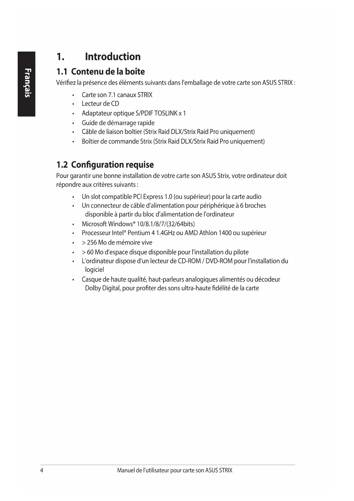 Manuel de l'utilisateur pour carte son ASUS STRIX Français N°. Éléments Description
