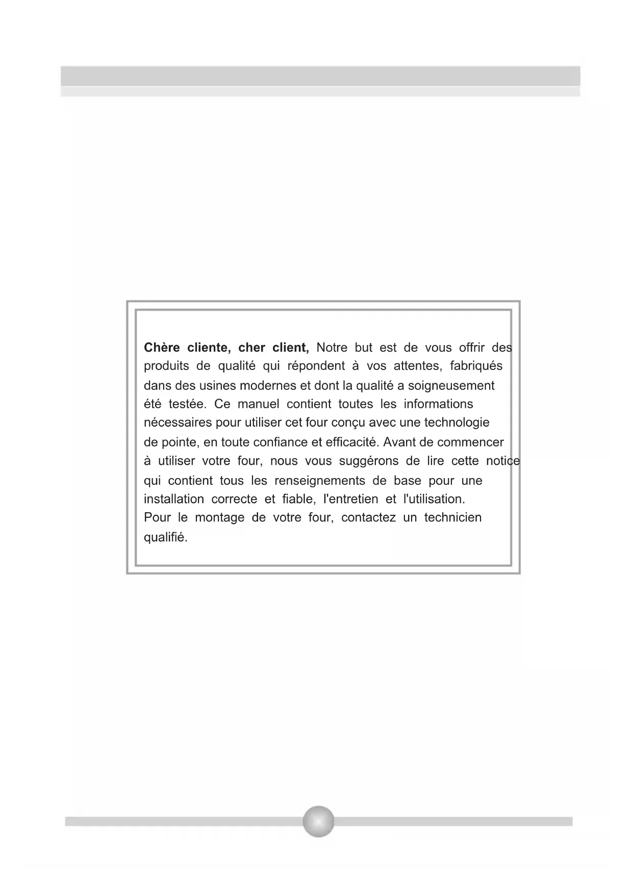 - Votre appareil de cuisson doit être installée et mis en service par un technicien qualifié. Le fabricant décline sa responsabilité pour tout dommage résultant d'un mauvais emplacement ou de l'installation de votre appareil de cuisson par un technicien non qualifié.