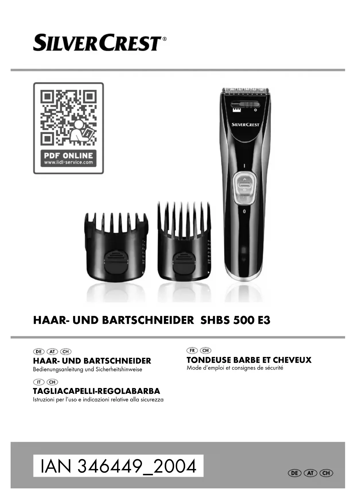 SHBS 500 D3 - Tondeuse à barbe SILVERCREST - Notice d'utilisation et mode d'emploi gratuit