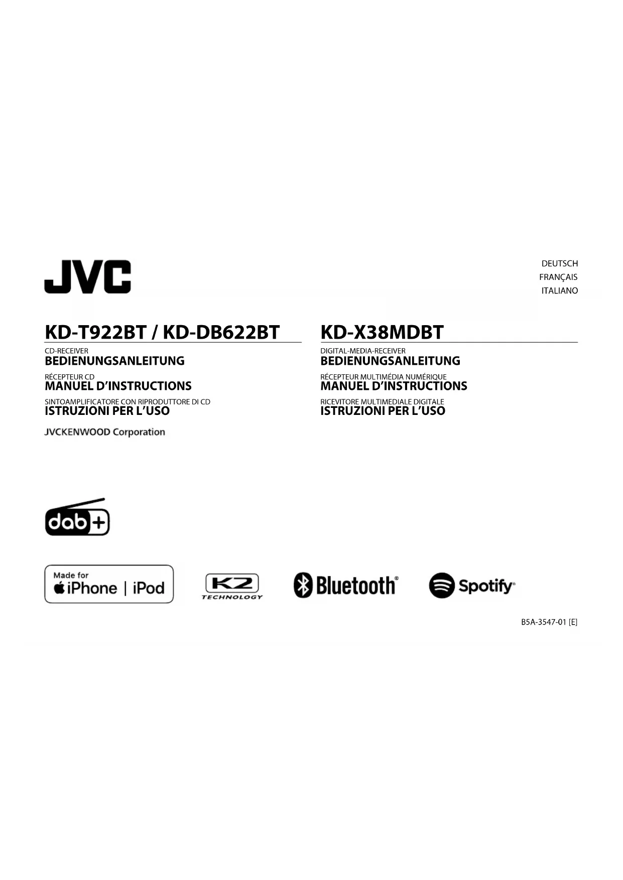 Retrouvez gratuitement la notice de l'appareil KDT922BT JVC au format PDF.
